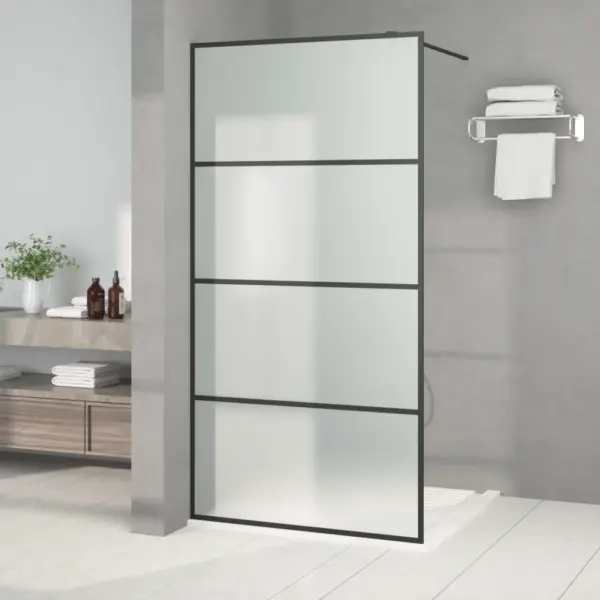See matt ESG-klaasiga must dušisein aitab luua vannituppa avatud ja kaasaegse dušinurga, hoides samal ajal vee kindlalt dušialas. 5 mm paksune karastatud klaas ja vastupidav alumiiniumraam tagavad tugeva struktuuri, mis sobib hästi igapäevaseks kasutamiseks. Tänu pritsmekindlale konstruktsioonile jääb ülejäänud vannitoa põrand kuivem ja hooldus lihtsam.