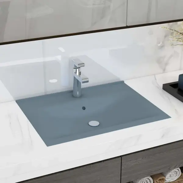 Matt helesinine keraamiline valamu modernse ja praktilise vannitoa jaoks