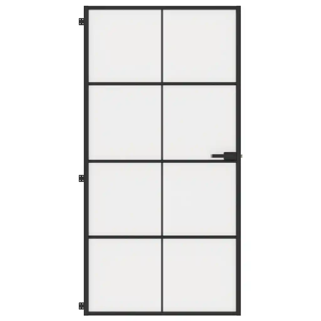 See mattklaasist siseuks õhukese musta alumiiniumraamiga aitab luua elegantse ülemineku ruumide vahel, säilitades samal ajal valguse ja avaruse. Karastatud mattklaas pakub head privaatsust kodus või kontoris, kuid laseb valgust läbi, et ruum ei muutuks pimedaks. Tänu modernsele mustale raamile sobitub uks hästi nii kaasaegsesse kui ka industriaalstiilis interjööri.