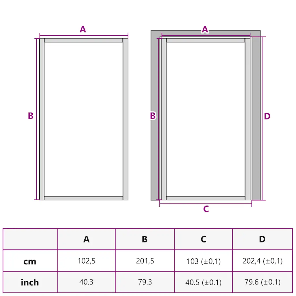• Mõõdud 102,5 x 201,5 cm sobivad enamiku standardsete siseukseavade jaoks, ukse paksus on 3,5 cm.