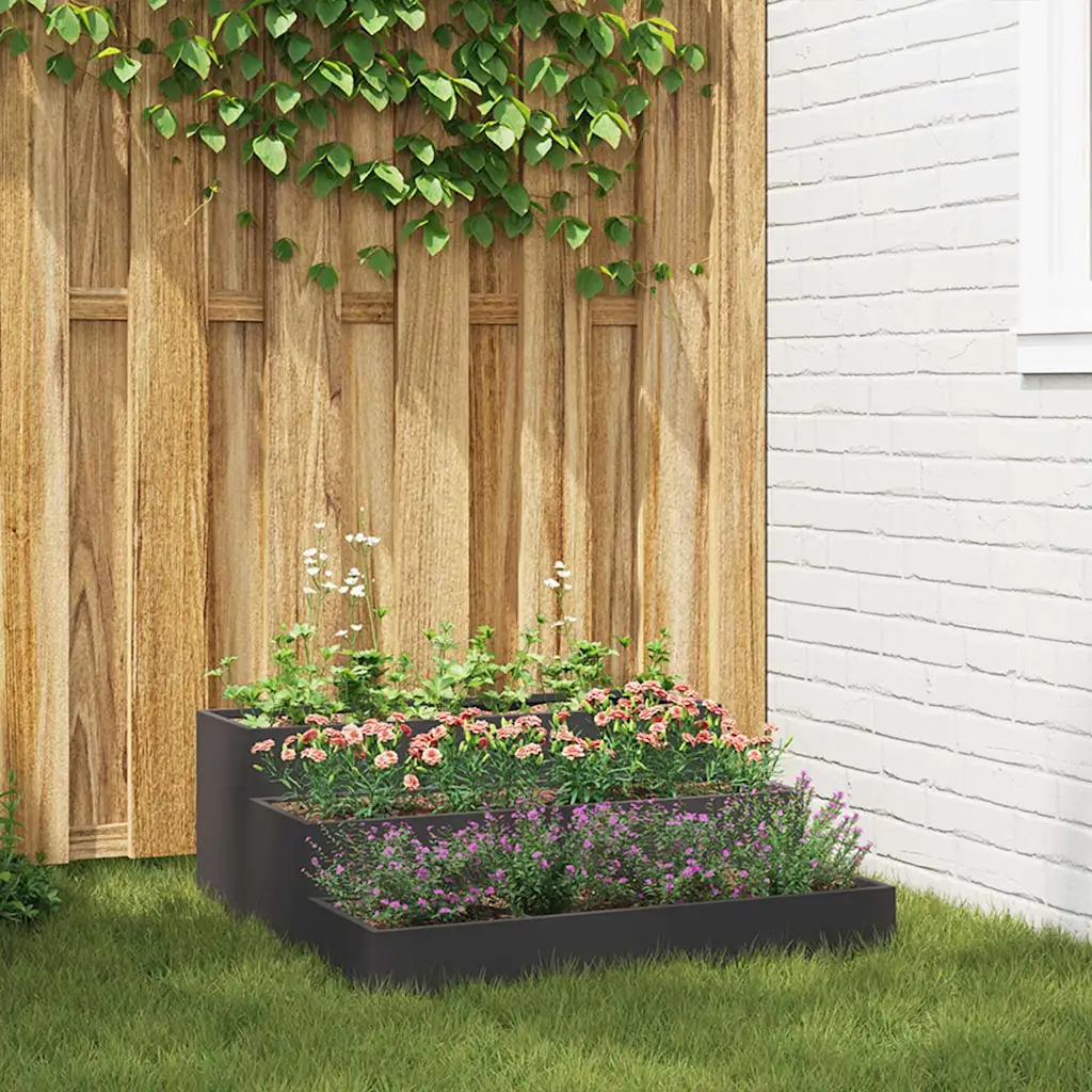 See mustast külmvaltsitud terasest aiakast loob korrastatud istutusala rõdule, terrassile või aeda. Ilmastikukindel ja stabiilne konstruktsioon sobib erinevate lillede ja maitsetaimede kasvatamiseks välistingimustes.