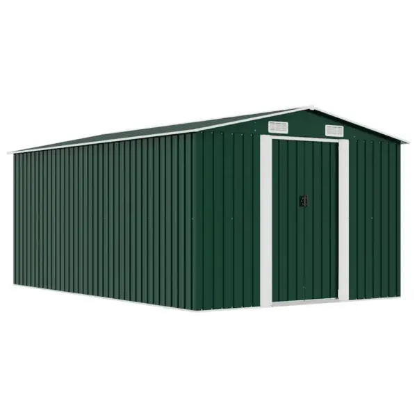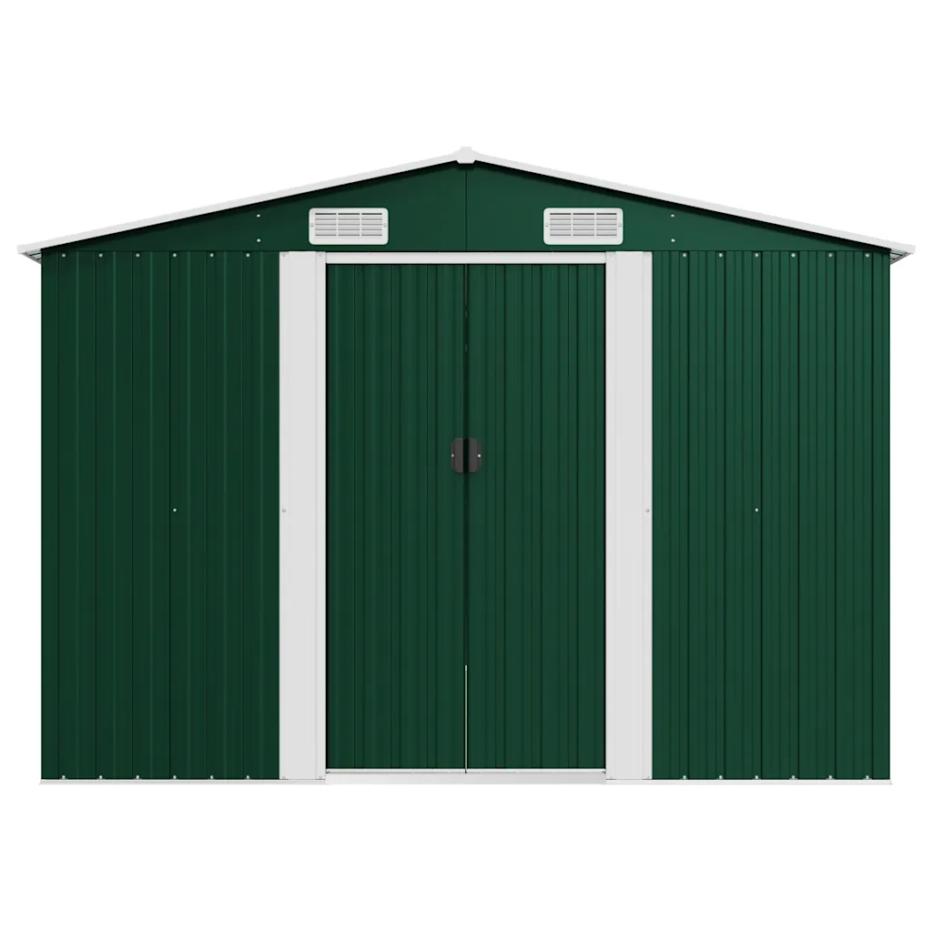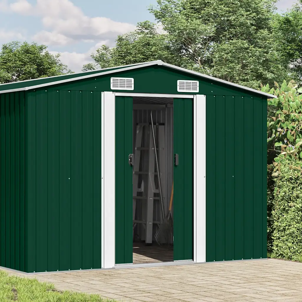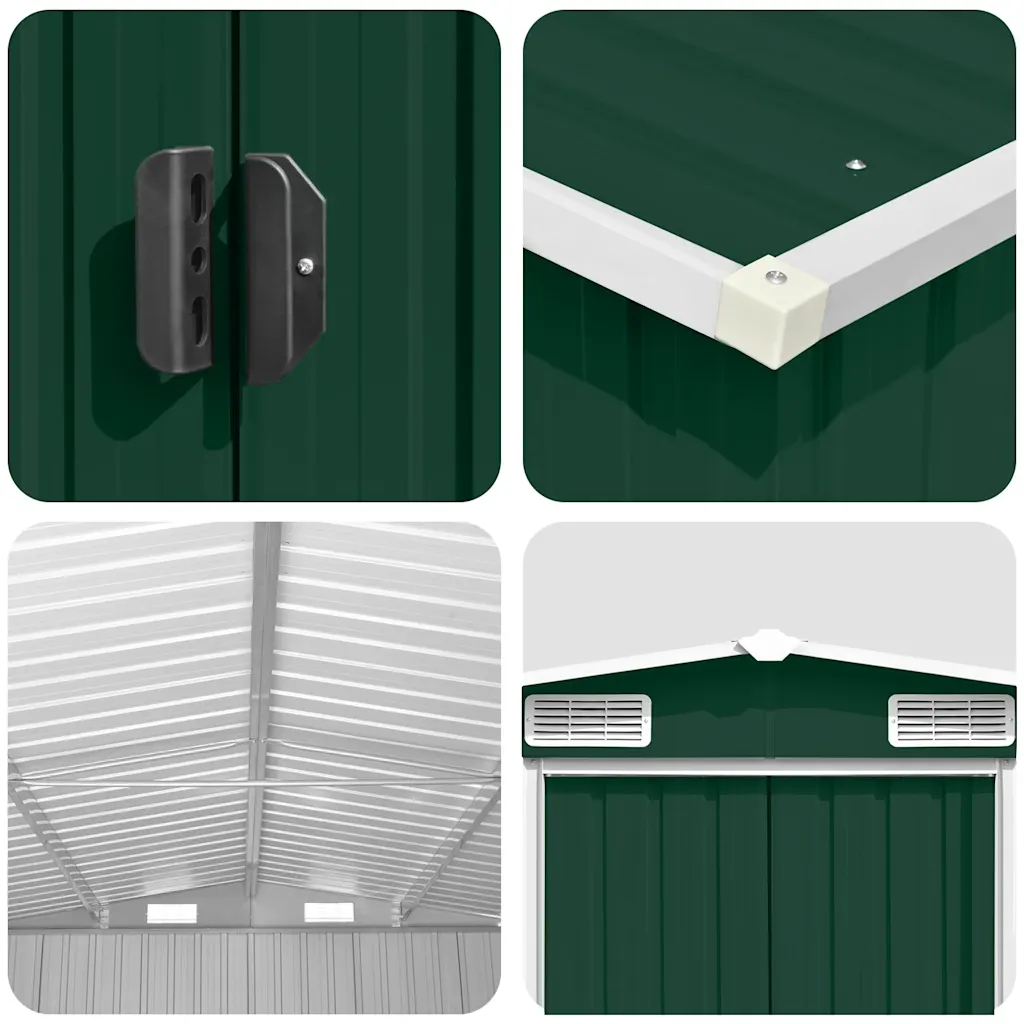 See roheline metallist aiakuur sobib tööriistade, aiamööbli ja erinevate aiatarvikute hoiustamiseks, hoides need kaitstult mustuse, tolmu, tuule ja sademete eest. Tsingitud terasest konstruktsioon koos pulbervärvitud viimistlusega muudab kuuri vastupidavaks igapäevasele kasutusele. Tänu topelt lükandustele ja ventilatsiooniavadele on kuuri kasutamine mugav ning sisemine kliima paremini tasakaalus.