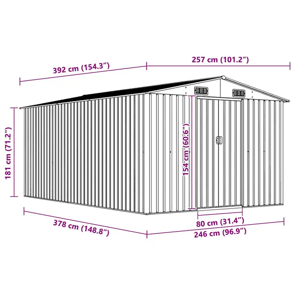 - Ruumikas panipaik mõõtmetega 257 x 392 x 181 cm mahutab nii tööriistad, muruniiduki kui ka aiamööbli.