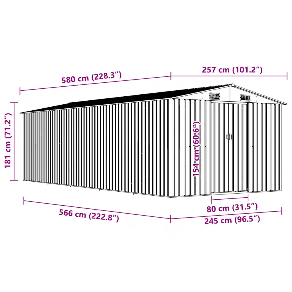 - Mahukad mõõtmed 257 x 580 x 181 cm (L x S x K) pakuvad rohkelt hoiuruumi nii väiksematele tööriistadele kui ka suurematele aiamasinatele ja mööblile.