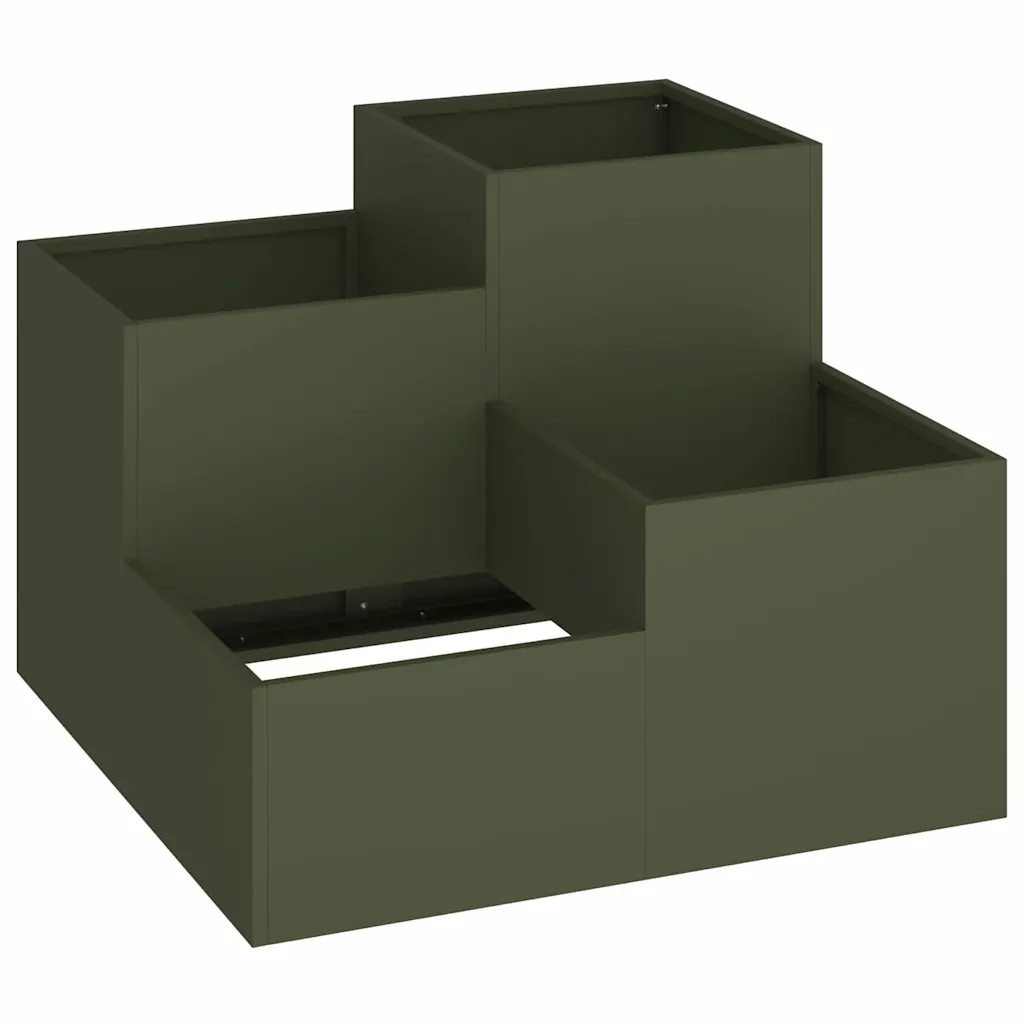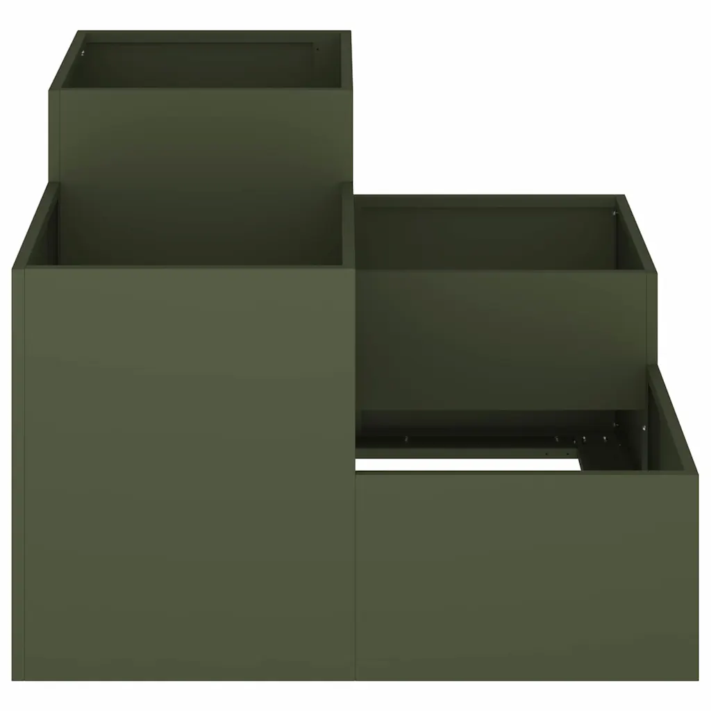 Kui soovid aeda või terrassi, kus taimed on korrastatult ja stiilselt esile tõstetud, pakub see oliiviroheline aiataimekast praktilist ja vastupidavat lahendust. Astmeline kuju, avatud põhi ja ilmastikukindel teras loovad sobiva istutuskoha nii dekoratiivsetele lilledelele kui ka igapäevastele maitsetaimedele.