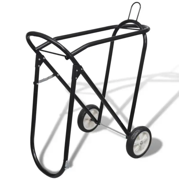 Kokkupandav sadula hoidik ratastega on mõeldud sadulate mugavaks transportimiseks ja hoiustamiseks tallis ning hobuste võistlustel. Tugev pulbervärvitud terasest konstruktsioon on roostevaba ja sobib igapäevaseks kasutuseks. Tänu kahele rattale saab raami lihtsalt liigutada bokside ja platside vahel.