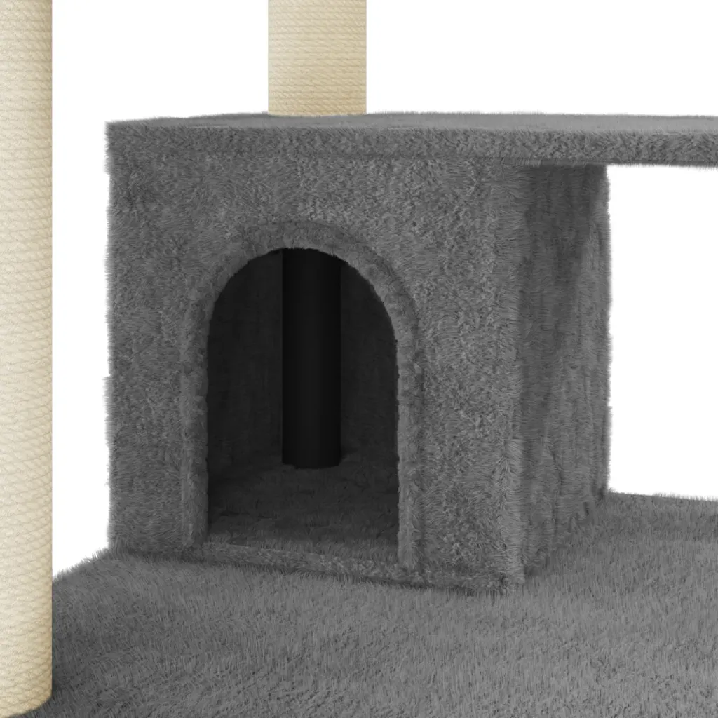 Kui otsite lahendust, mis ühendab kraapimispuu, ronimisraja ja magamispaiga ühes kompaktses tornis, on see tumehall kassimaja praktiline valik. Kõrge konstruktsioon, sisaliga kaetud postid ja pehmed plüüsplatvormid loovad kassile mitmekesise keskkonna, mis aitab vähendada igavust ning hoida teie kodu mööblit paremas seisukorras.