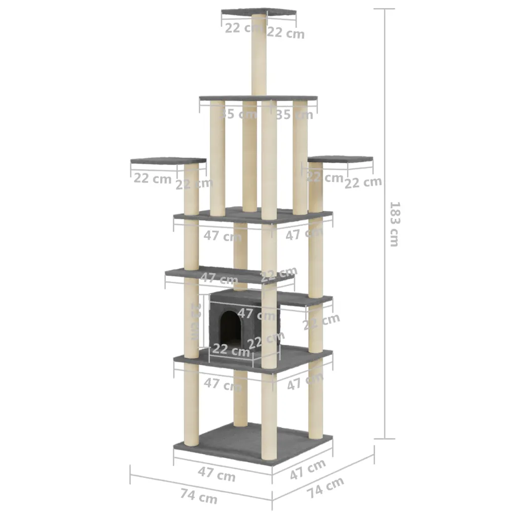 - 183 cm kõrgune kassipuu pakub rohkelt vertikaalset liikumisruumi ja sobib hästi ka väiksemasse tuppa.