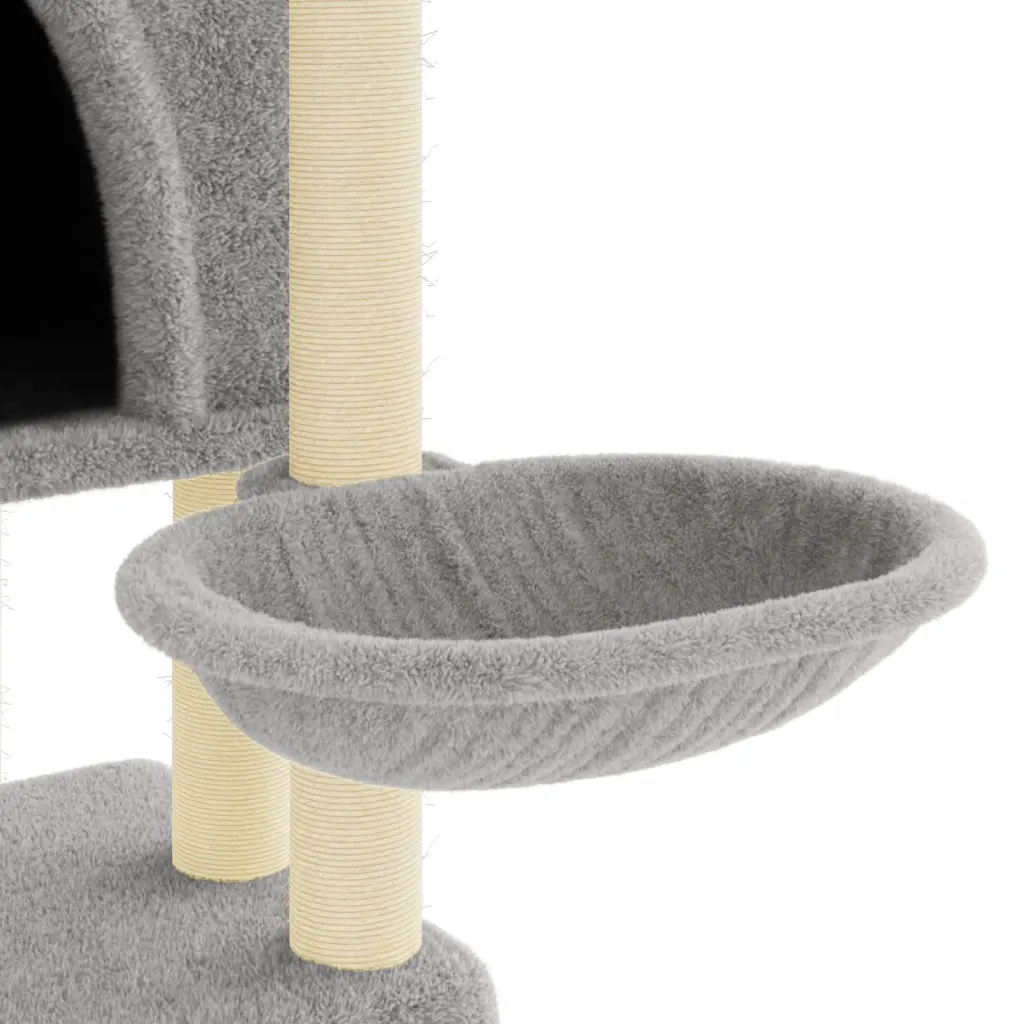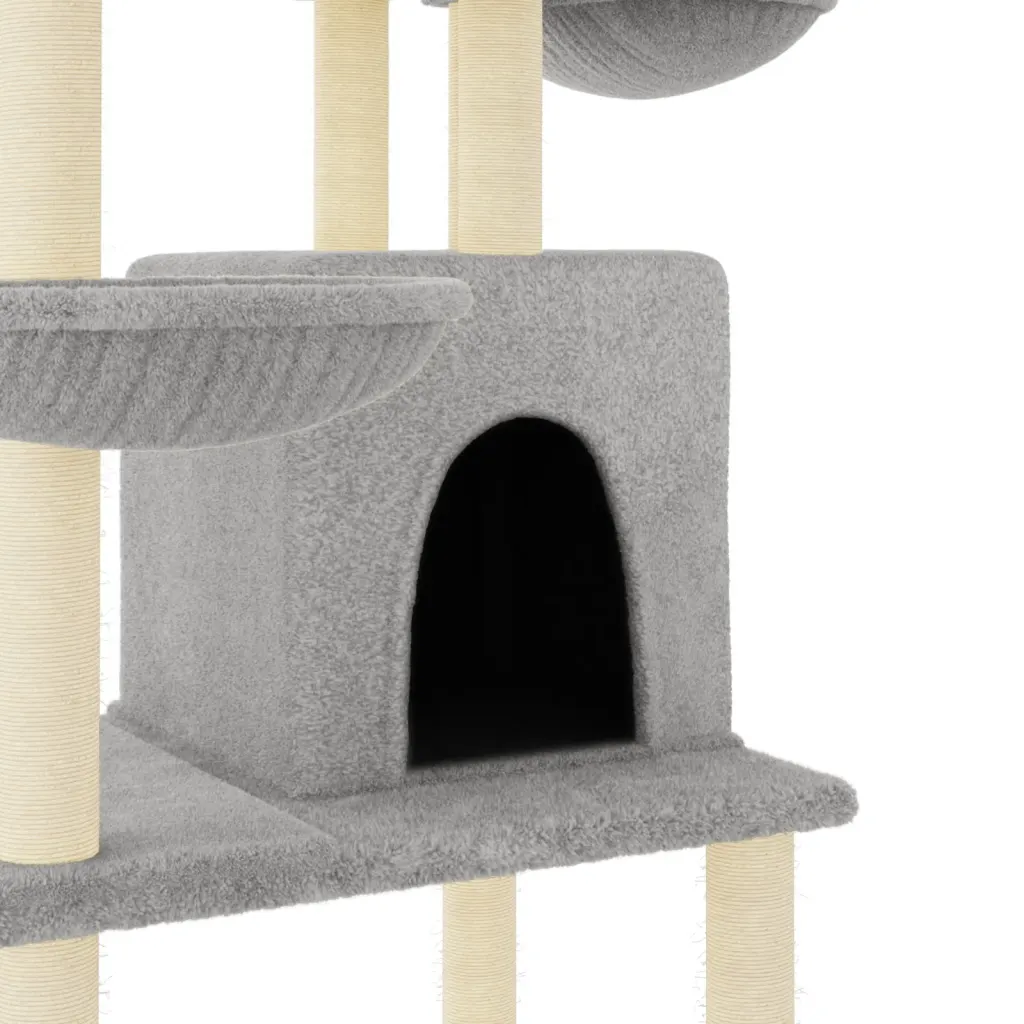 See mitmetasandiline kassimaja pakub teie kassidele mugavat kohta ronimiseks, kraapimiseks ja puhkamiseks. Helehall plüüsist kate loob pehme ning sooja pinna lõõgastumiseks, samas kui sisalköiega kraapimispostid aitavad suunata loomuliku kraapimisinstinkti mööblist eemale.