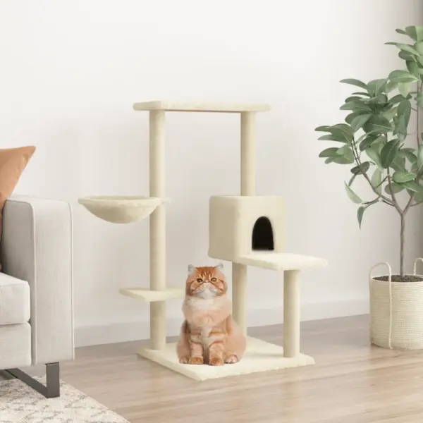 Kui soovite kassile pakkuda oma nurka mängimiseks, puhkamiseks ja kraapimiseks ning samal ajal hoida mööbli pindu paremini kaitstuna, on see kreemjasvalge mitmetasandiline kassimaja sisalpostidega praktiline valik. Kompaktne, kuid mitmekülgne torn sobib hästi igapäevaseks kasutamiseks nii ühe kui ka mitme kassi puhul.