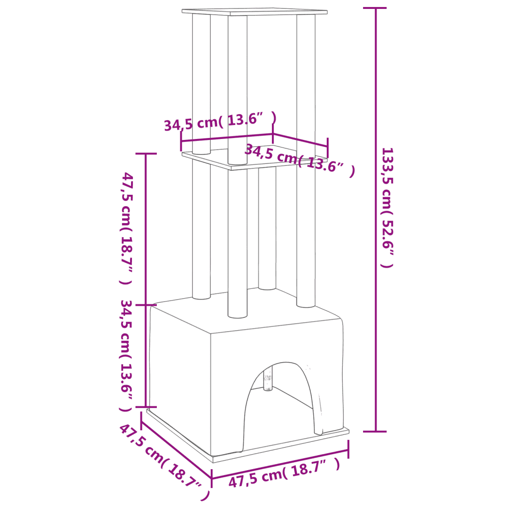 • Kõrgus 133,5 cm pakub kassile kõrgemat vaatluskohta, kust ümbrust turvaliselt jälgida.