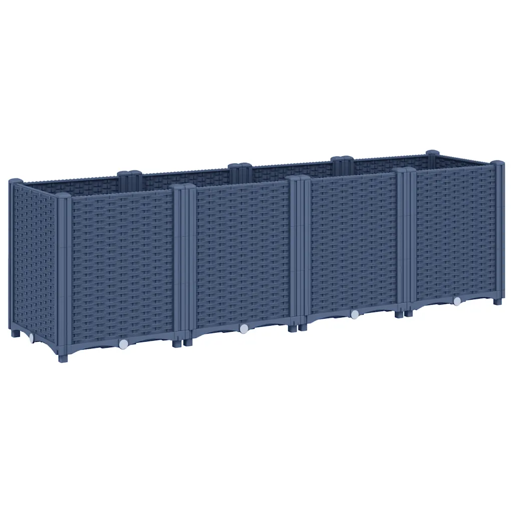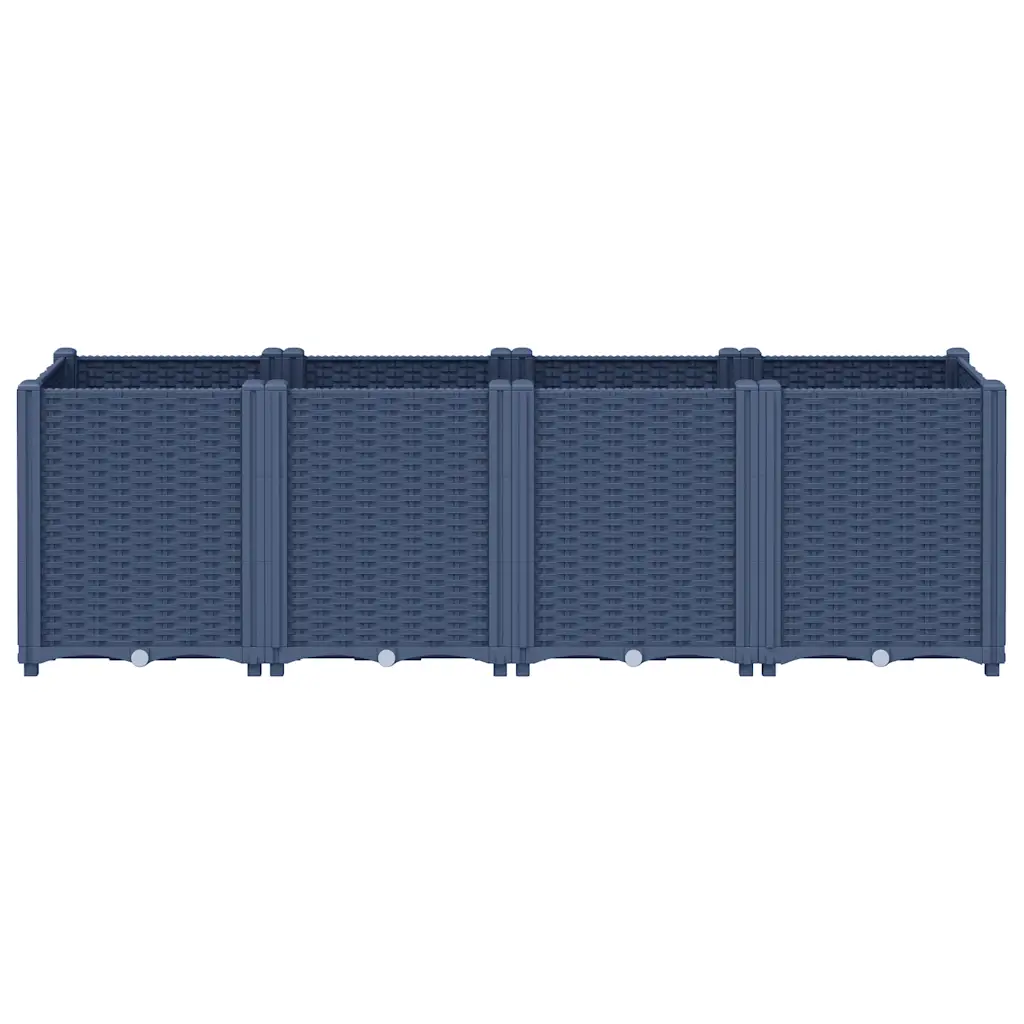 Vali see sinakashall modulaarne aia taimekast, kui soovid luua ühtse ja korrastatud istutusala ilma püsivalt pinnast kaevamata. Rotangimustriga PP konstruktsioon on kerge ja vastupidav, neli omavahel ühendatavat moodulit pakuvad paindlikku paigutust ning praktiline põhjakiht aitab hoida taimedele sobivat niiskustaset.
