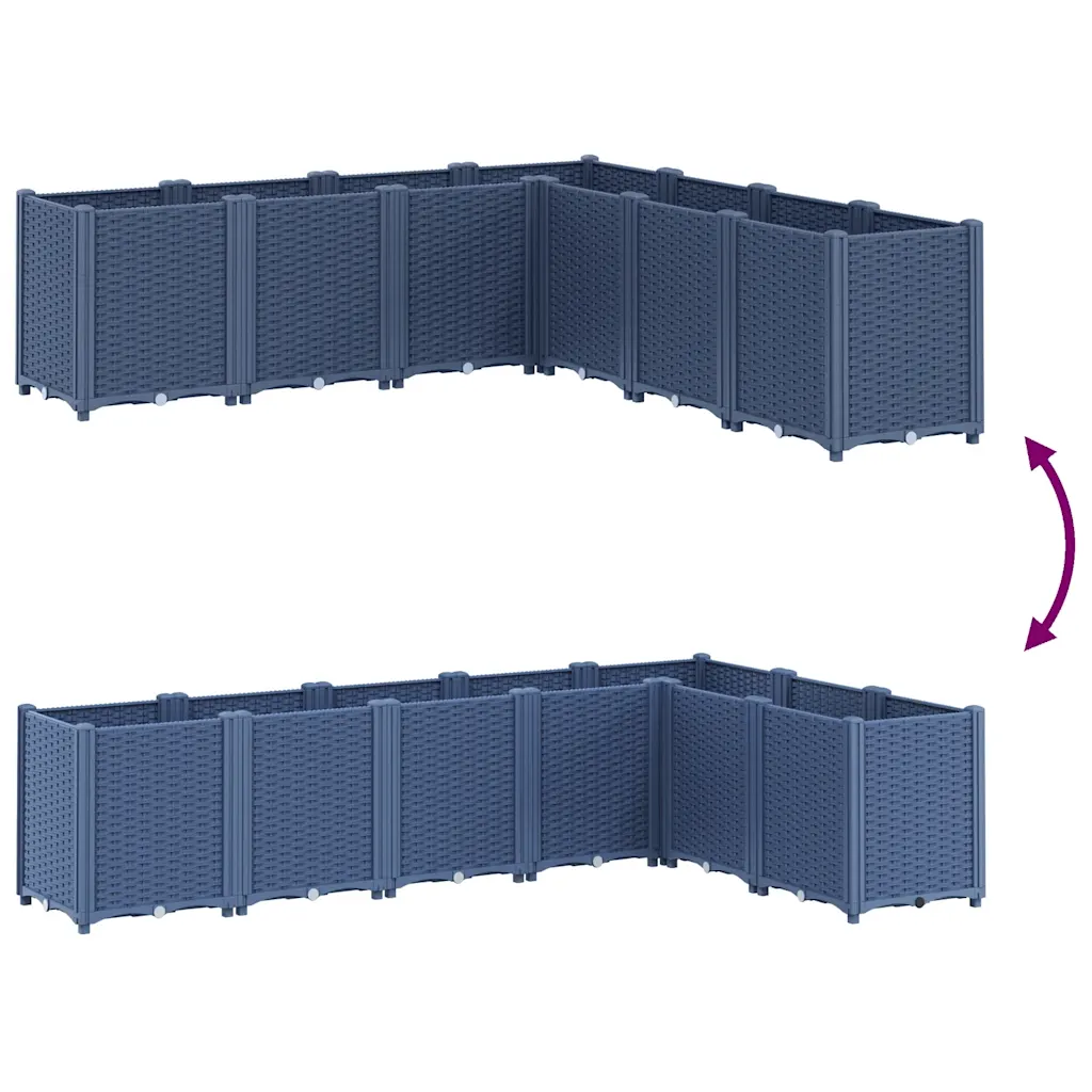 See modulaarne aia taimekastide komplekt loob lihtsa lahenduse taimede kasvatamiseks aias, rõdul või terrassil. Sinakashallist polüpropüleenist valmistatud rotangimustriga kastid on kerged, samas tugevad ja löögikindlad ning sobivad kasutamiseks eri tüüpi taimedega. Seitse omavahel ühendatavat taimekasti moodustavad kokku 160 x 160 x 53 cm suuruse istutusala, mida saab kohandada vastavalt teie väliruumi kujule.