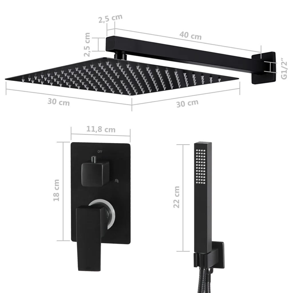 Must dušisüsteem kandilise vihmadušiga toob vannituppa selge ja modernse ilme. Suur 30 x 30 cm ülepeaotsak ja kitsas käsidušš pakuvad nii lõõgastavat vihmadušši kui täpsemat pesu. Silikoonist veeavadega otsakud on katlakivikindlad ja püsivad kergesti hooldatavad. Vastupidavast roostevabast terasest valmistatud süsteem sobib igapäevaseks kasutamiseks.