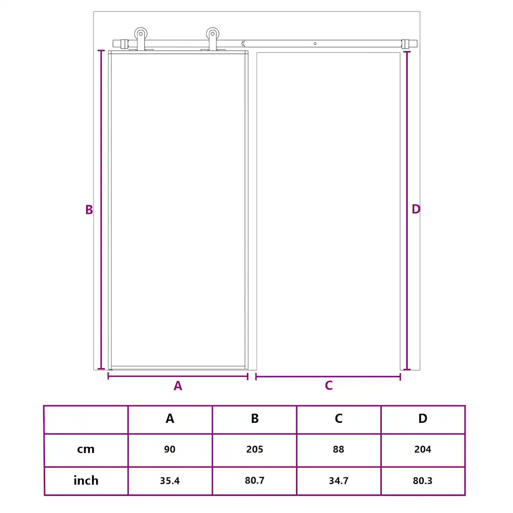 - Universaalsed mõõdud – ukse suurus 90 x 205 cm sobib paljudele standardsuuruses ukseavadele ning ukse- ja klaasipaksus tagavad kindla tunde kasutamisel.