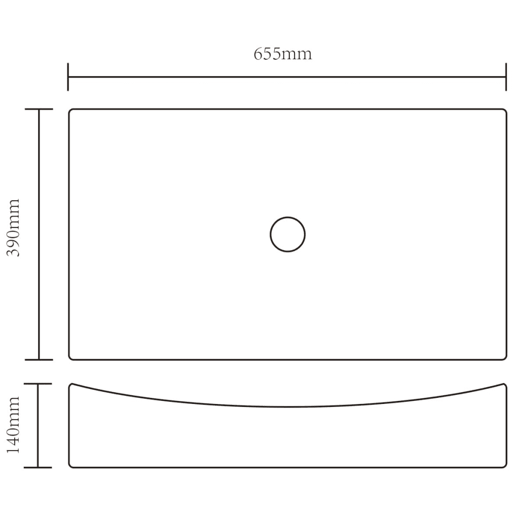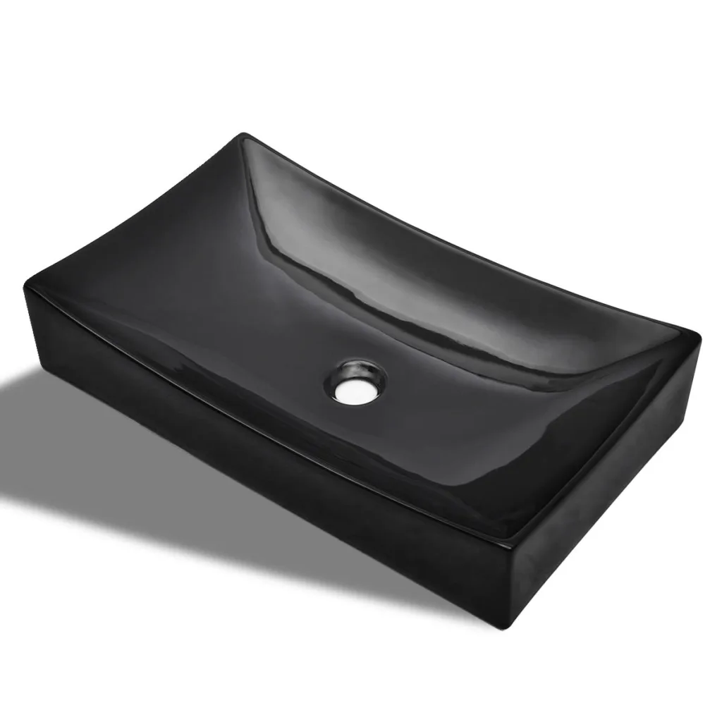 • Keraamiline kapipealne valamu, must, mõõtudega 65,5 x 39 x 14 cm