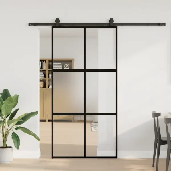 See karastatud klaasist lükanduks musta raamiga loob stiilse ja ruumisäästliku läbipääsu eri ruumide vahel. Matt ja läbipaistev klaas lasevad loomuliku valguse läbi, kuid aitavad samal ajal hoida vajalikku privaatsust. Vastupidav alumiiniumraam ja komplekti kuuluv liugriistvara tagavad ukse sujuva ja kindla liikumise igapäevasel kasutamisel.
