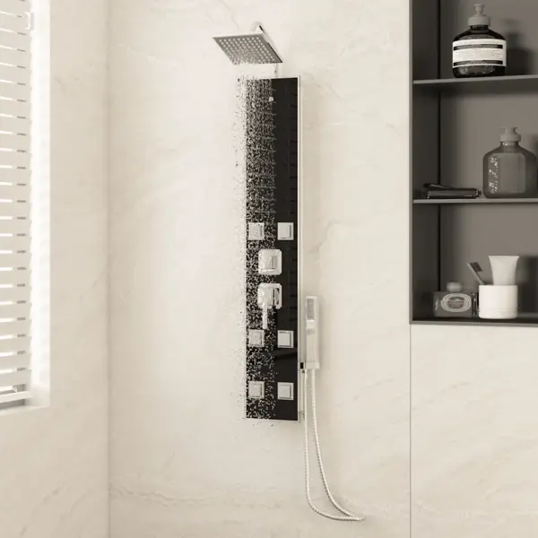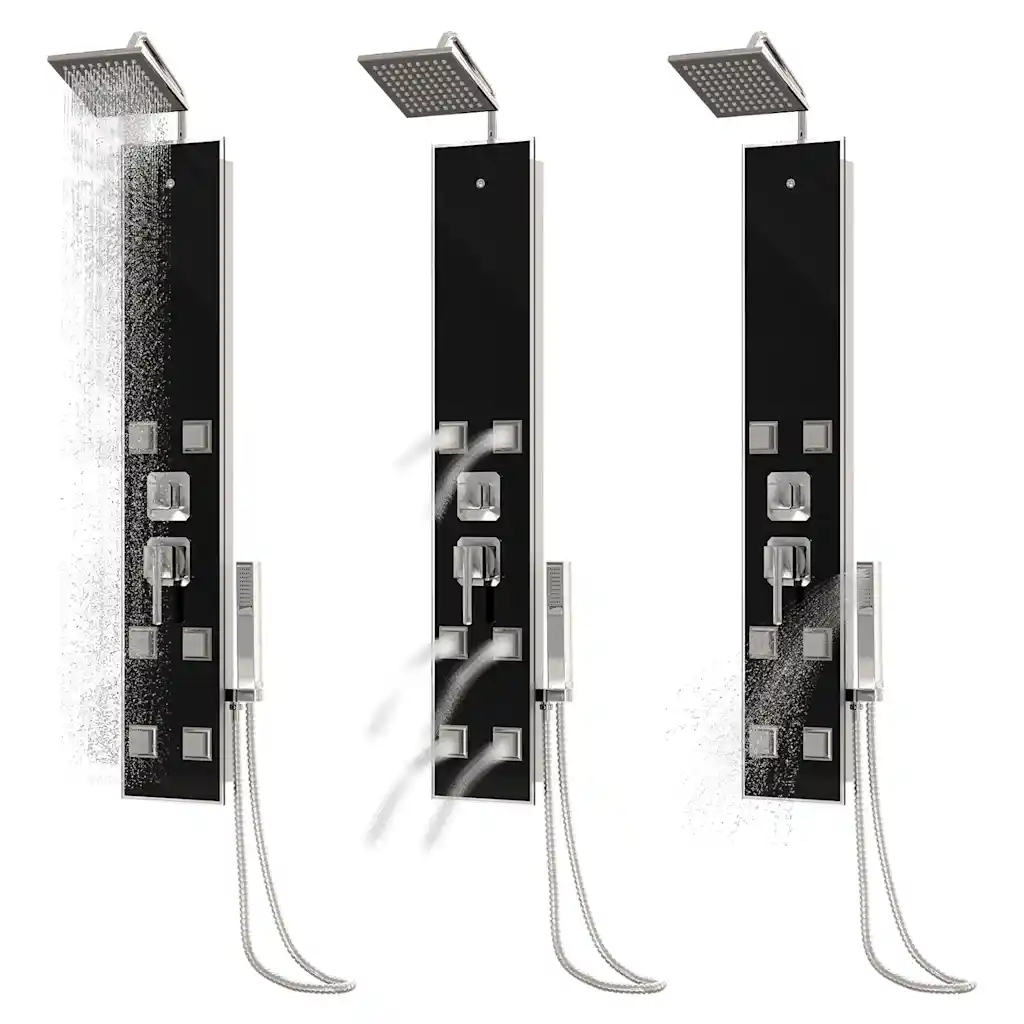 Mitmefunktsiooniline must klaasist dušipaneel lõõgastavaks duši all käimiseks