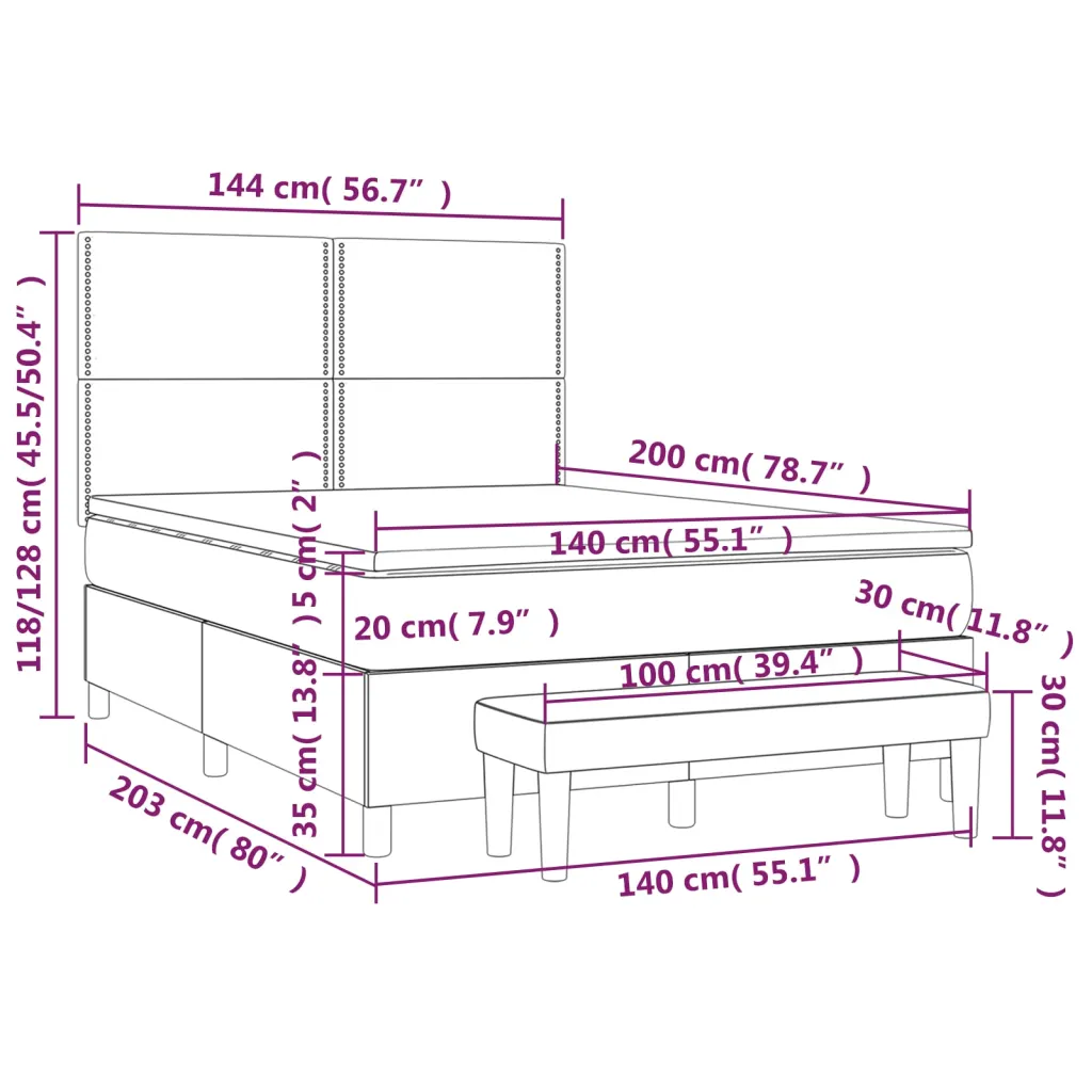 • 1 x voodiraam musta kangaga kaetud konstruktsioon mõõtudega 203 x 144 x 118 või 128 cm
