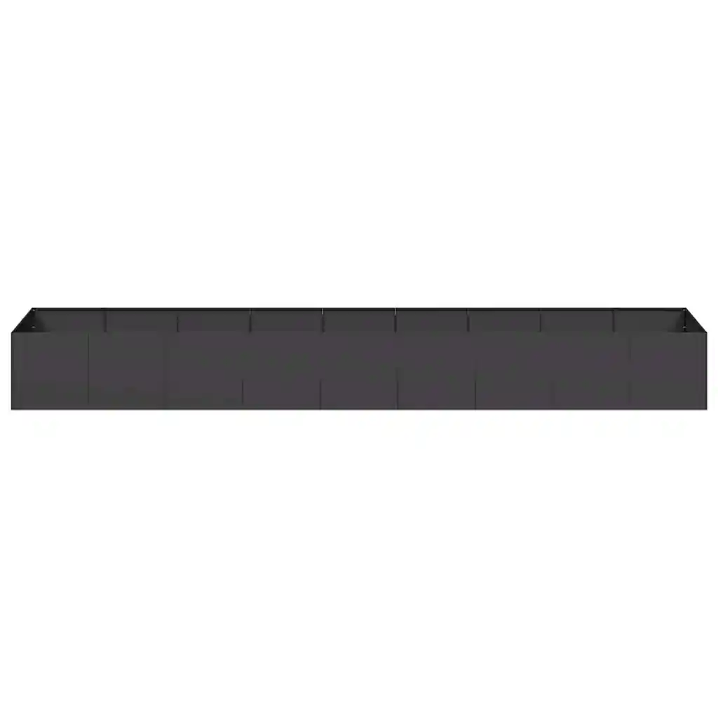Must külmvaltsitud terasest taimekast loob aias, terrassil või rõdul selge jaotusala taimede, ürtide või lillede jaoks. 360 x 80 x 40 cm mõõtmetega kast mahutab palju mulda, pakkudes taimedele ruumikat ja stabiilset kasvukeskkonda.