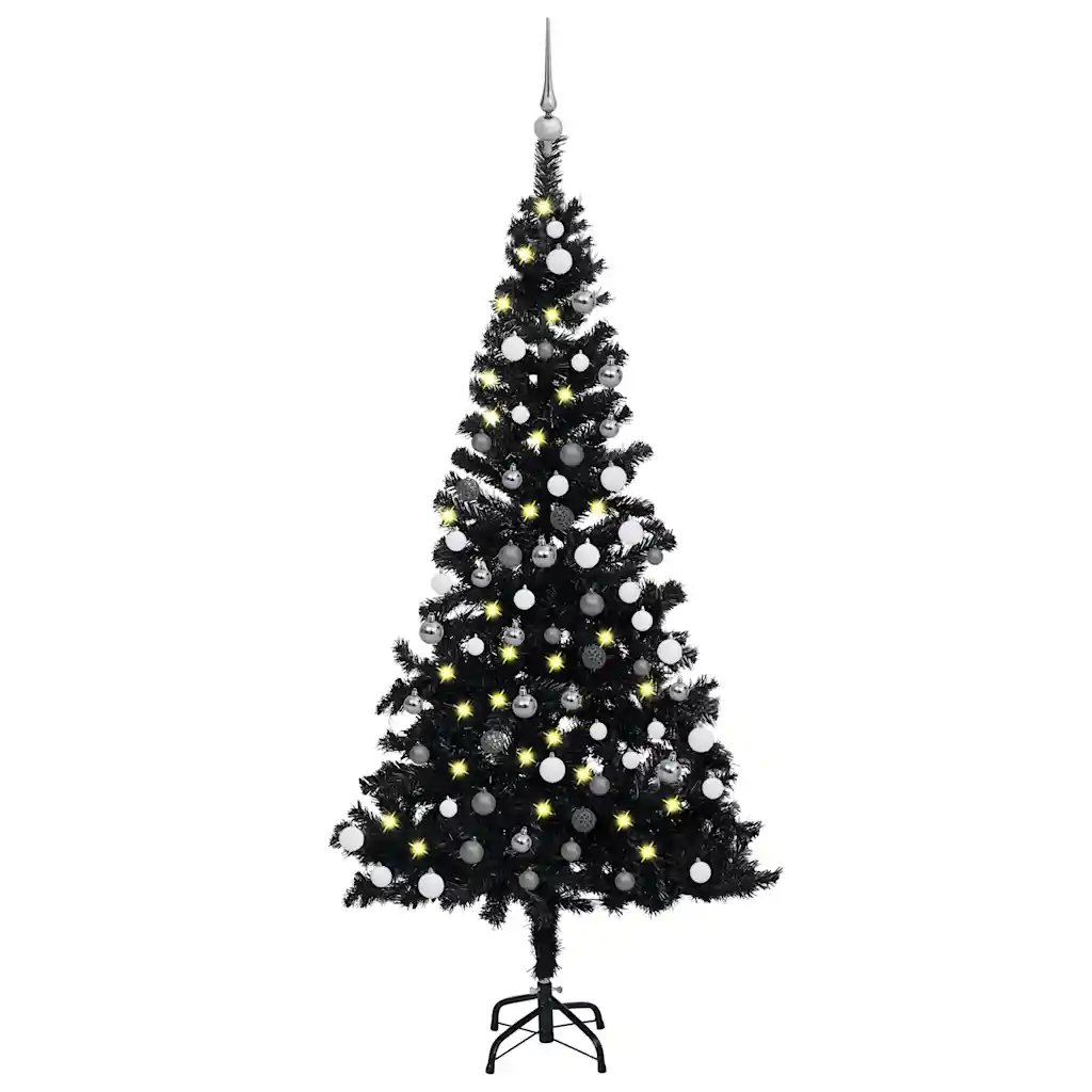 See 150 cm kõrgune must kunstkuusk on praktiline lahendus, kui soovite elutruu välimusega, kuid hõlpsasti hooldatavat jõulupuud. Vastupidavast PVC-st valmistatud oksad ja tugev terasest alus tagavad stabiilsuse, energiasäästlik LED-valguskett loob seejuures hubase pühadevalguse.
