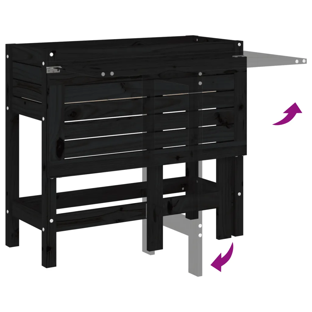 See männipuidust kõrgendatud taimekast ühendab istutuskasti ja tööpinna, sobides hästi rõdule, terrassile või aeda. Kokkupandav lauaplaat pakub piisavalt ruumi taimede istutamiseks ja hooldamiseks, kuid selle saab vajadusel kokku klappida, et ruumi säästa. Must viimistlus loob tagasihoidliku ja kaasaegse ilme, mis sobib erinevatesse väliruumidesse.