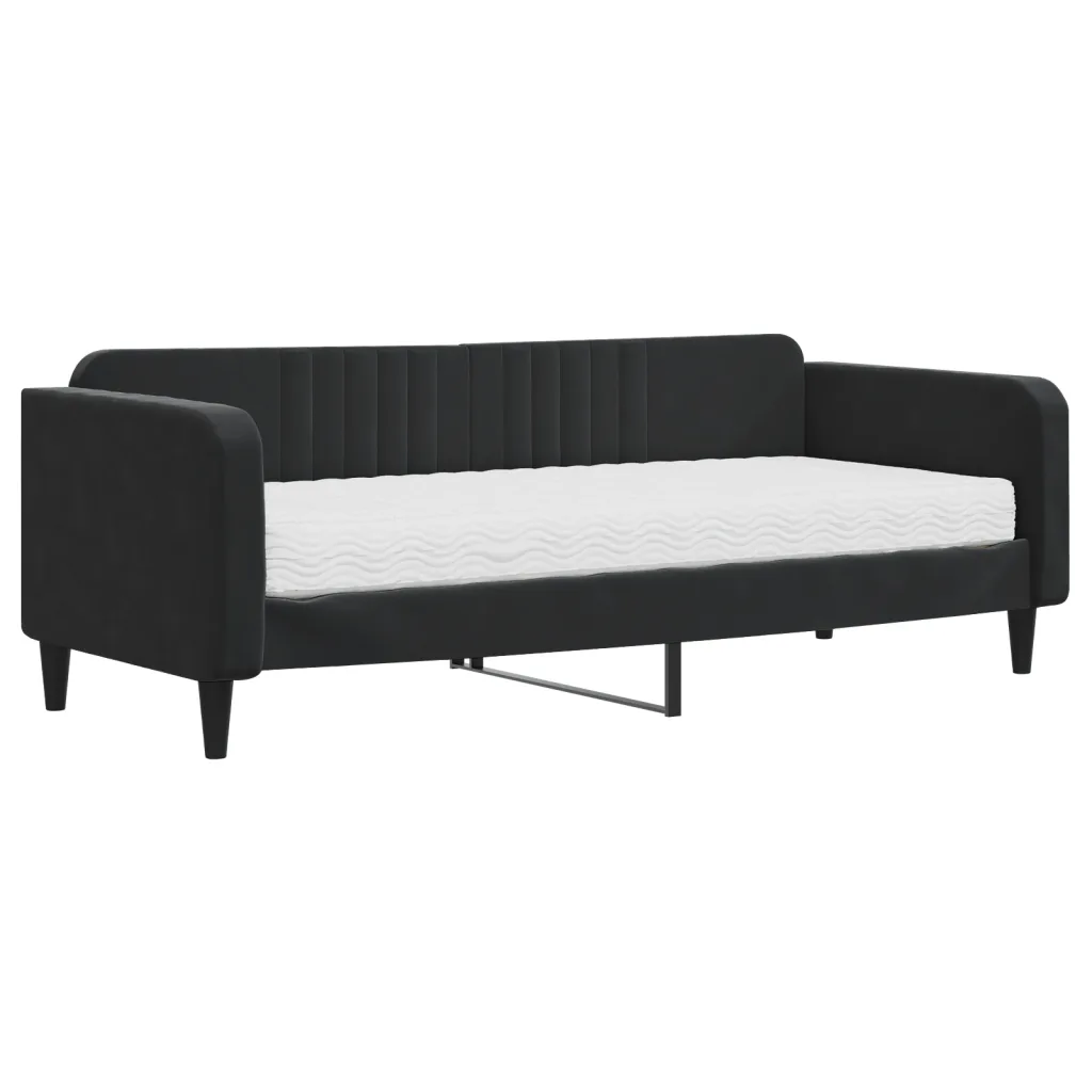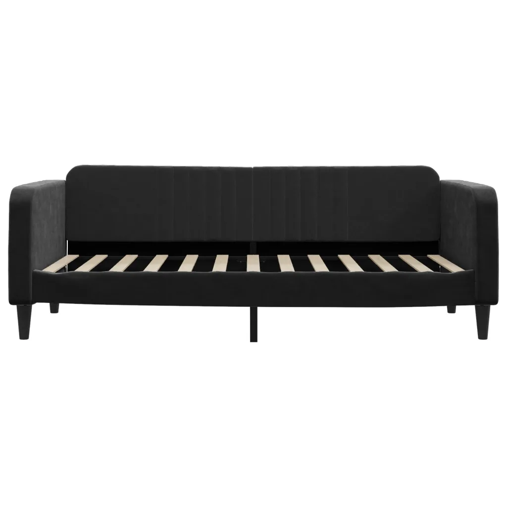 See mustast sametist päevavoodi madratsiga ühendab endas diivani ja üheinimesevoodi, sobides hästi elutuppa, külalistetuppa või noortetuppa. Päeval toimib see mugava istumiskohana ning öösel saab sellest kiiresti täismõõdus magamiskoha 90 x 200 cm, pakkudes praktilist lahendust nii igapäevaseks kasutamiseks kui ka külaliste majutamiseks. Tugev konstruktsioon ja komplekti kuuluv poroloonmadrats tagavad stabiilsuse ja hea une.