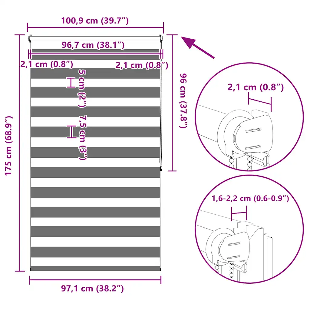 Reguleeri loomulikku valgust musta sebrarulooga mõõdus 100 x 175 cm