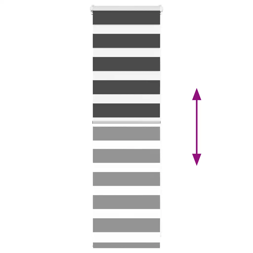 • Reguleeritav valgus ja privaatsus – kahekihiline triibuline kangas koosneb vahelduvatest läbipaistmatutest ribadest (7,5 cm) ja läbipaistvatest ribadest (5 cm), mis võimaldavad valgust reguleerida poolläbipaistvast kuni peaaegu pimendavani.