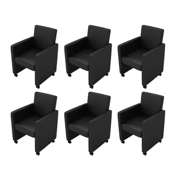 Kuuest osast koosnev mustade kunstnahast söögitoolide komplekt pakub mugavat ja ühtse välimusega istumislahendust söögilaua ümber. Tänu paksule polsterdusele istmel ja seljatoel toetavad toolid hästi keha ning sobivad igapäevaseks kasutamiseks.
