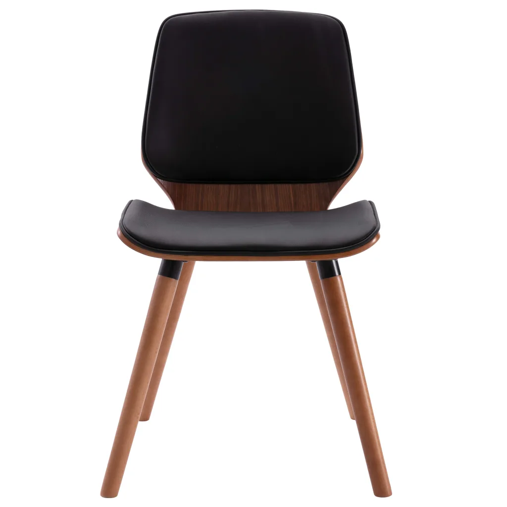 See komplekt sisaldab kahte musta kunstnahast söögitooli, mis toovad söögituppa või kööki ühtlase ja kaasaegse ilme. Pehmelt polsterdatud iste ja seljatugi tagavad mugava istumiskogemuse, samal ajal kui painutatud puidust raam kroomitud metalliga annab toolidele voolujoonelise disaini ja hea vastupidavuse igapäevasel kasutamisel.