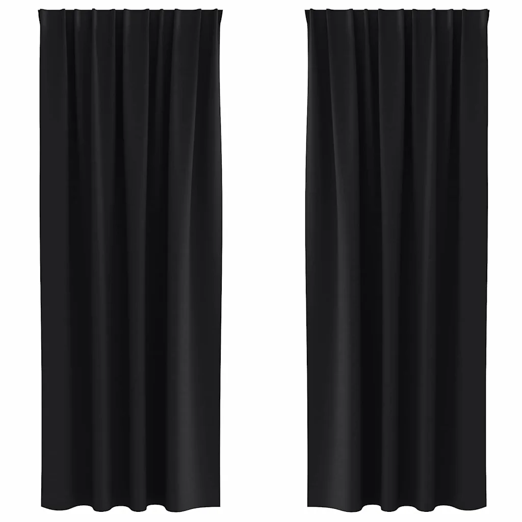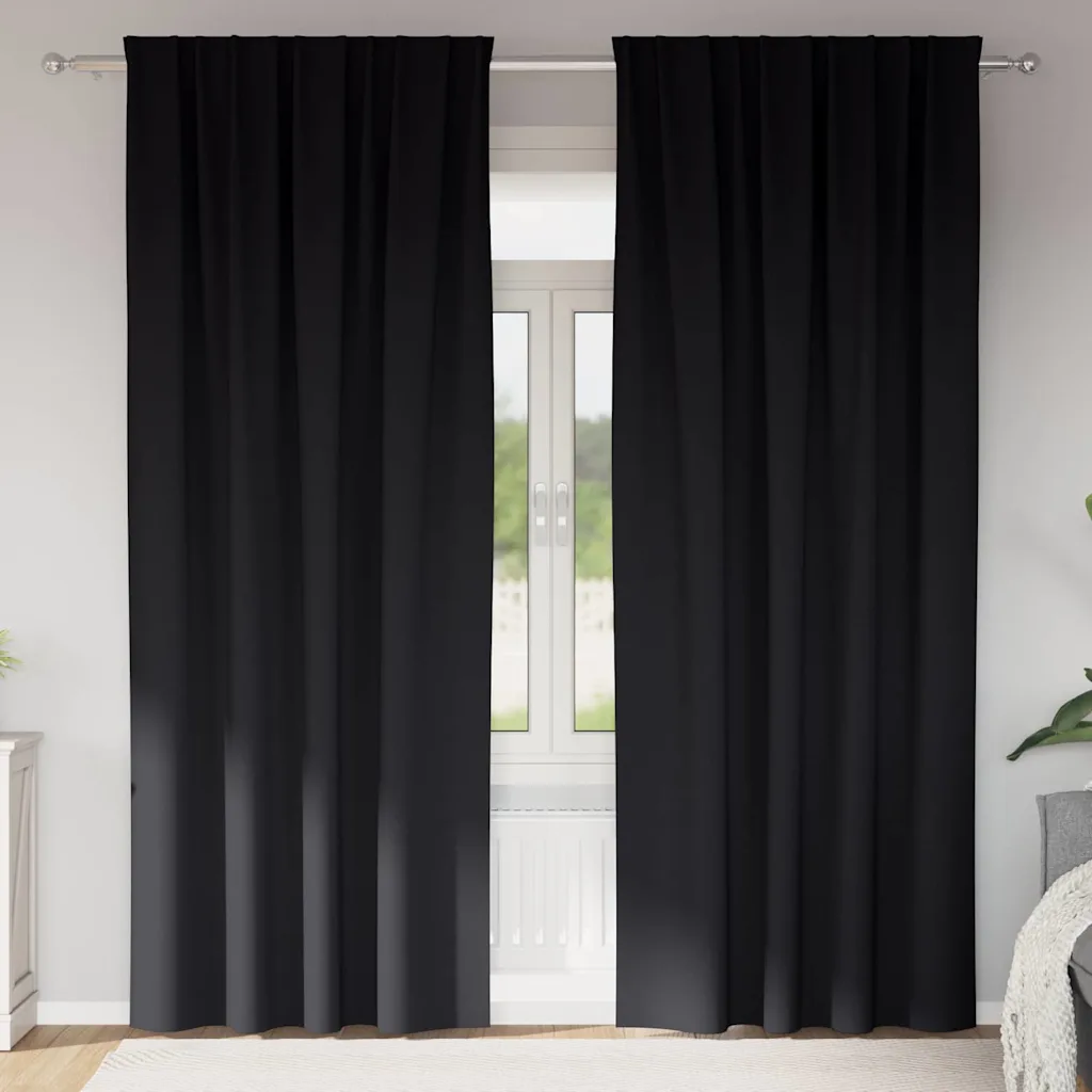 - 2 x pimendav kardin mõõtudega 245 x 140 cm (pikkus x laius), musta värvi polüestrist.
