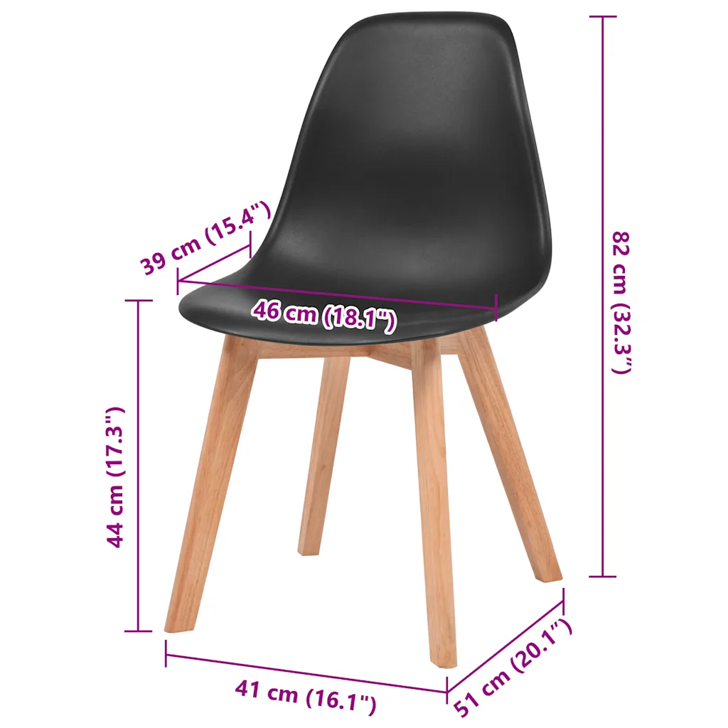 Kaheosaline komplekt musti söögitoole pakub mugavat istumisvõimalust nii igapäevaseks kasutamiseks kui ka pidulikemaks õhtusöökideks. Ergonoomiliselt kujundatud plastist iste koos integreeritud seljatoega toetab keha loomulikku asendit ning kaarjas kuju sobitub hästi erinevate sisustusstiilidega. Tänu kautšukipuidust jalgadele on toolid stabiilsed ja vastupidavad, sobides kasutamiseks köögis, söögitoas või kodukontoris.