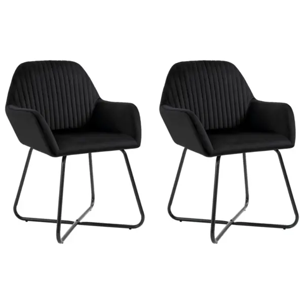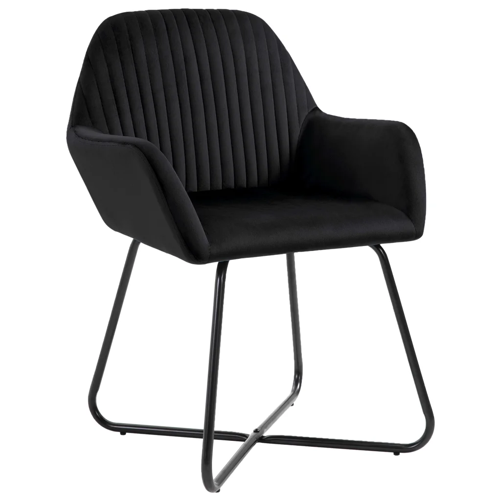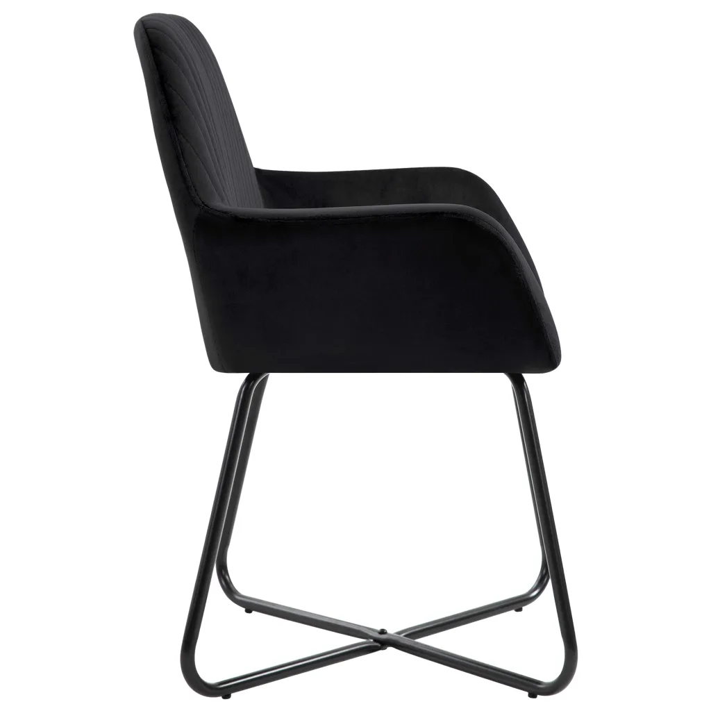 Kui otsid mugavaid ja kaasaegse välimusega söögitoole, ühendab see komplekt pehme sametpolstri, toetavad käetoed ja stabiilsed terasjalad. Läbimõeldud mõõdud ja neutraalne must värv teevad toolid sobivaks nii söögituppa kui elutuppa, pakkudes mugavat istekohta igapäevaseks kasutuseks.