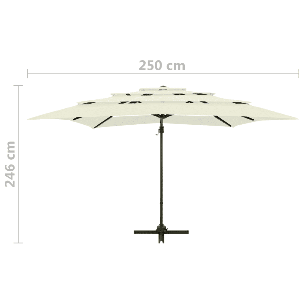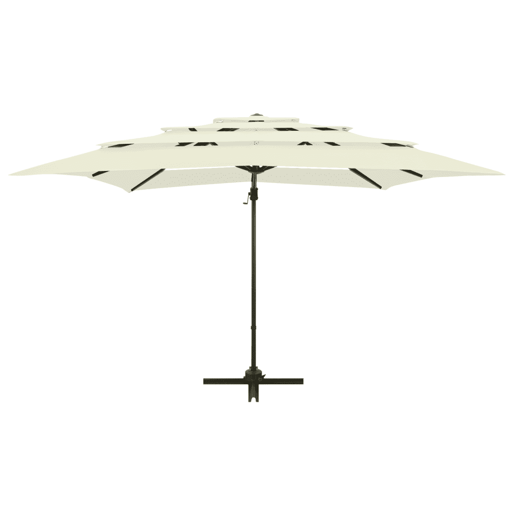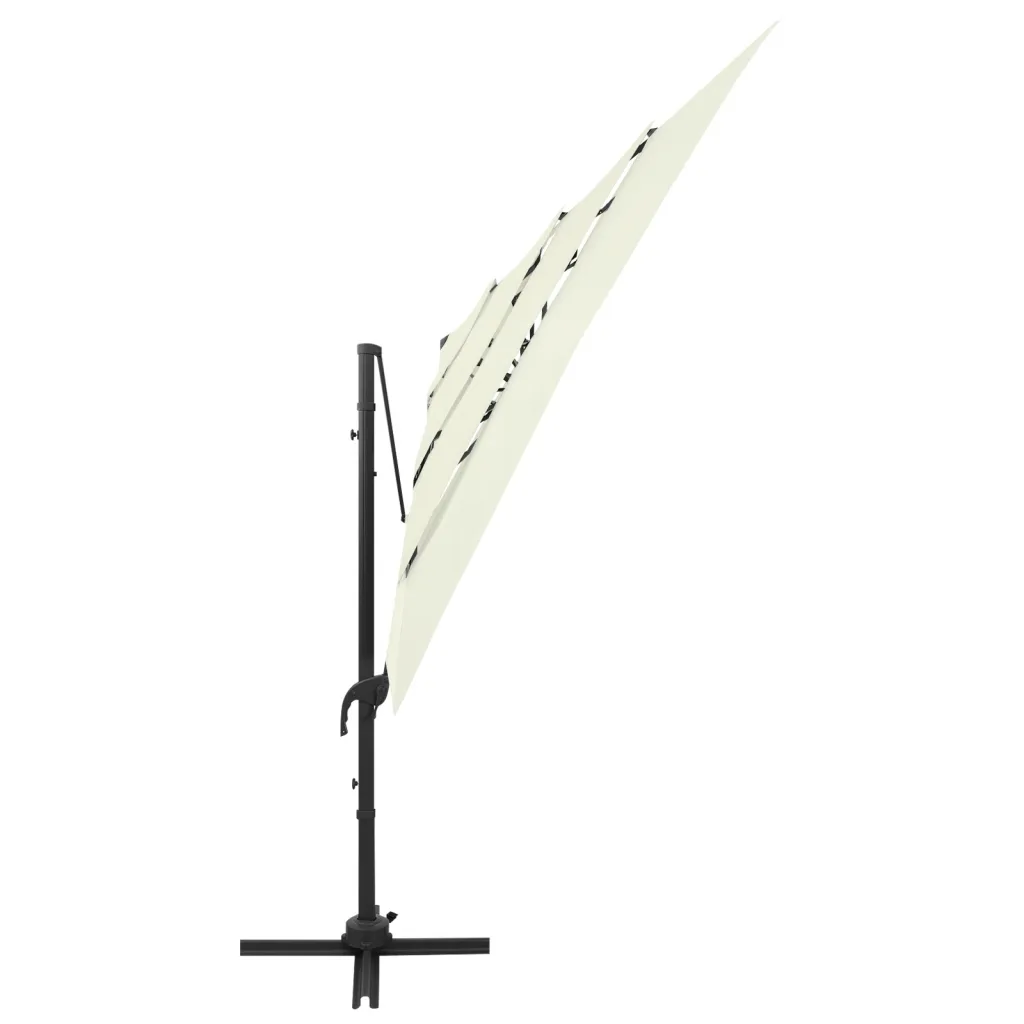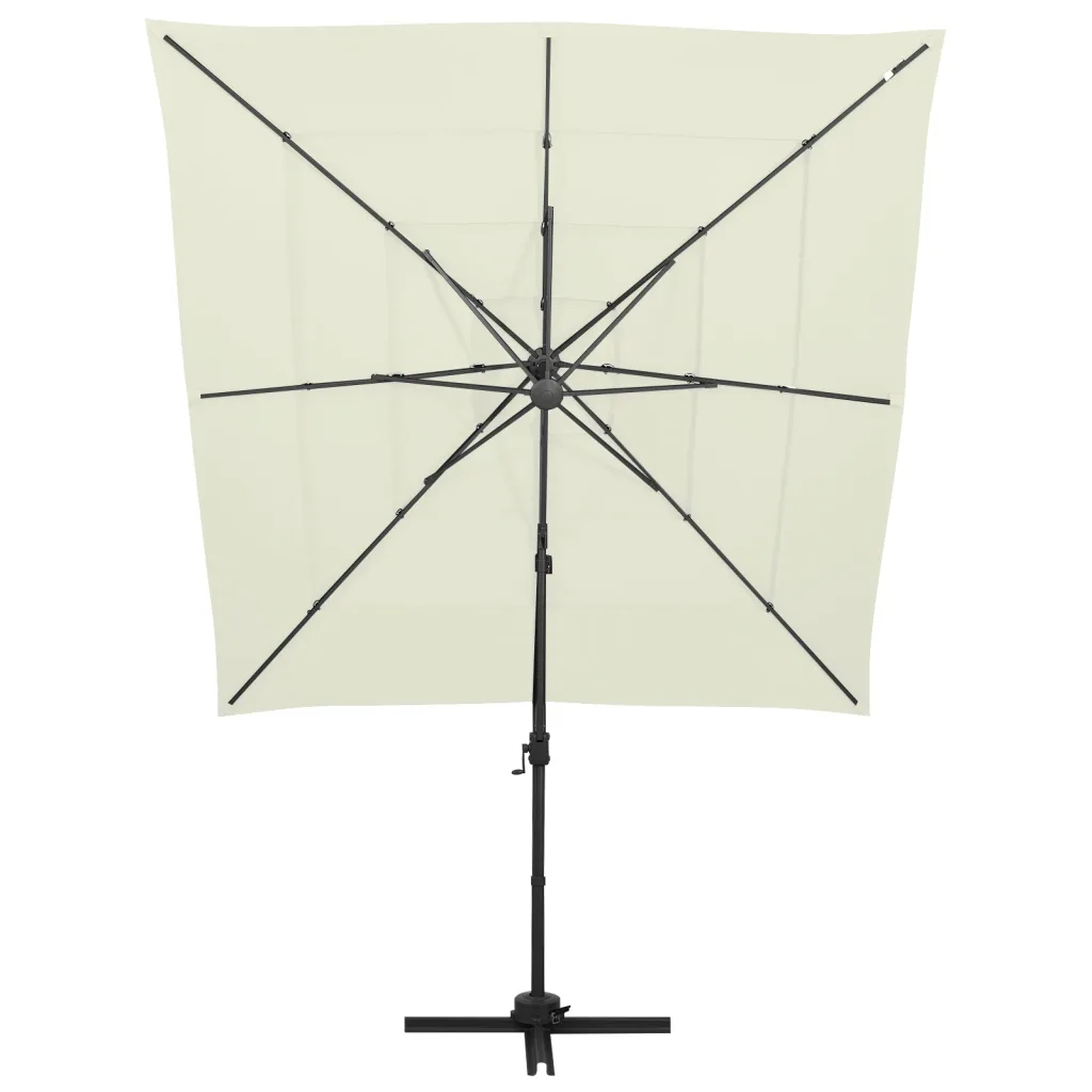 See liivakarva nelinurkne päikesevari loob meeldiva varju istumisnurka aias, terrassil või siseõues, kaitstes sind otsese päikesevalguse ja kerge vihma eest. UV-kaitsega polüesterkate ning tugev alumiiniumpost aitavad hoida ala jahedama ja mugavana ka päikeselistel päevadel.