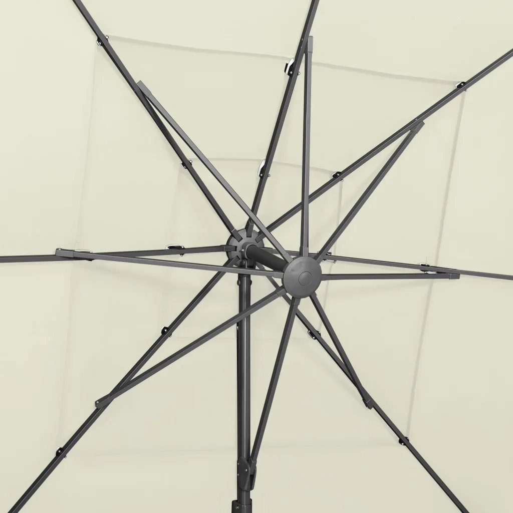 - Kokkupandav konstruktsioon muudab päikesevarju lihtsasti hoiustatavaks ja teisaldatavaks.