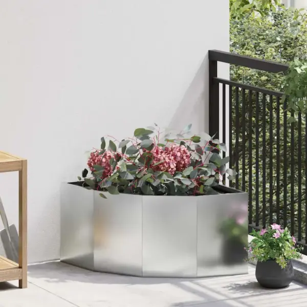 Vali see nurga istutuskast, kui soovid tõhusalt kasutada ära aias, terrassil või rõdul olevaid nurki ning lisada ruumile korrastatud ja kaasaegse ilme. Tsingitud terasest konstruktsioon ja nurgakujuline lahendus teevad sellest sobiva valiku, kui otsid vastupidavat ja ruumi säästvat istutuslahendust välitingimustesse.