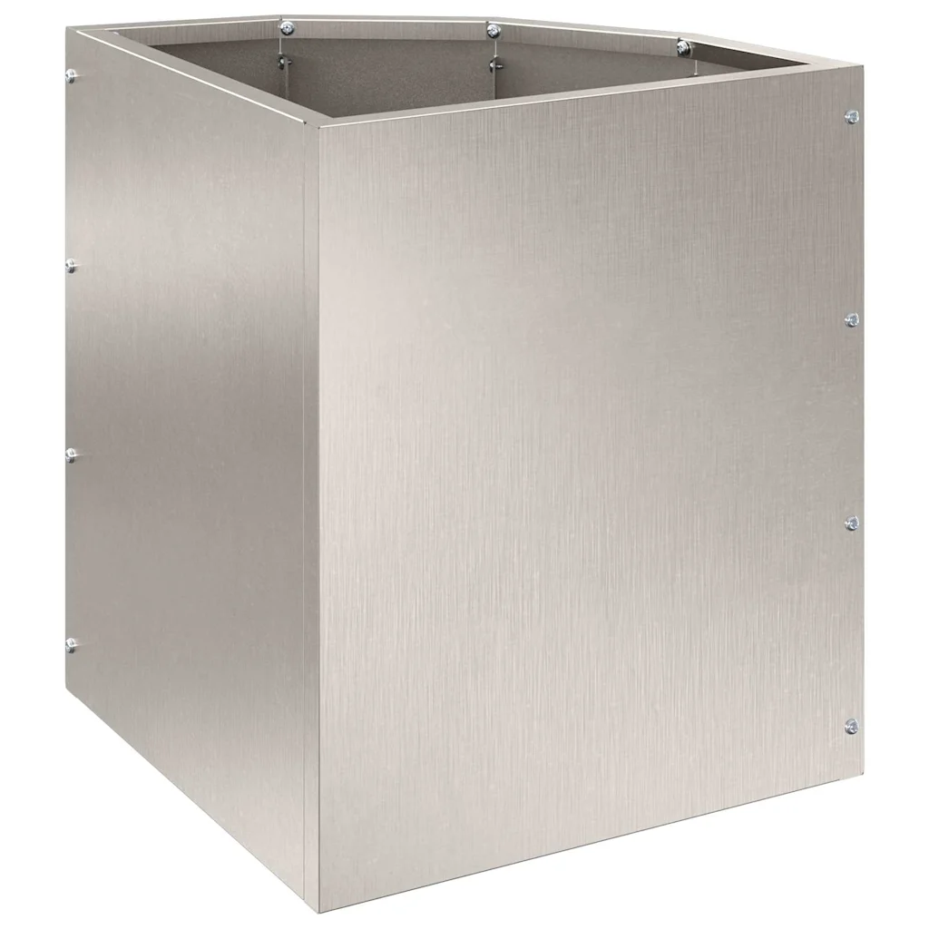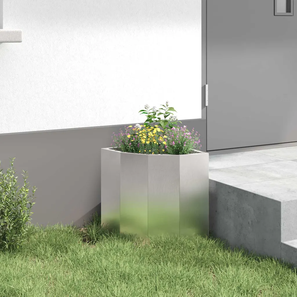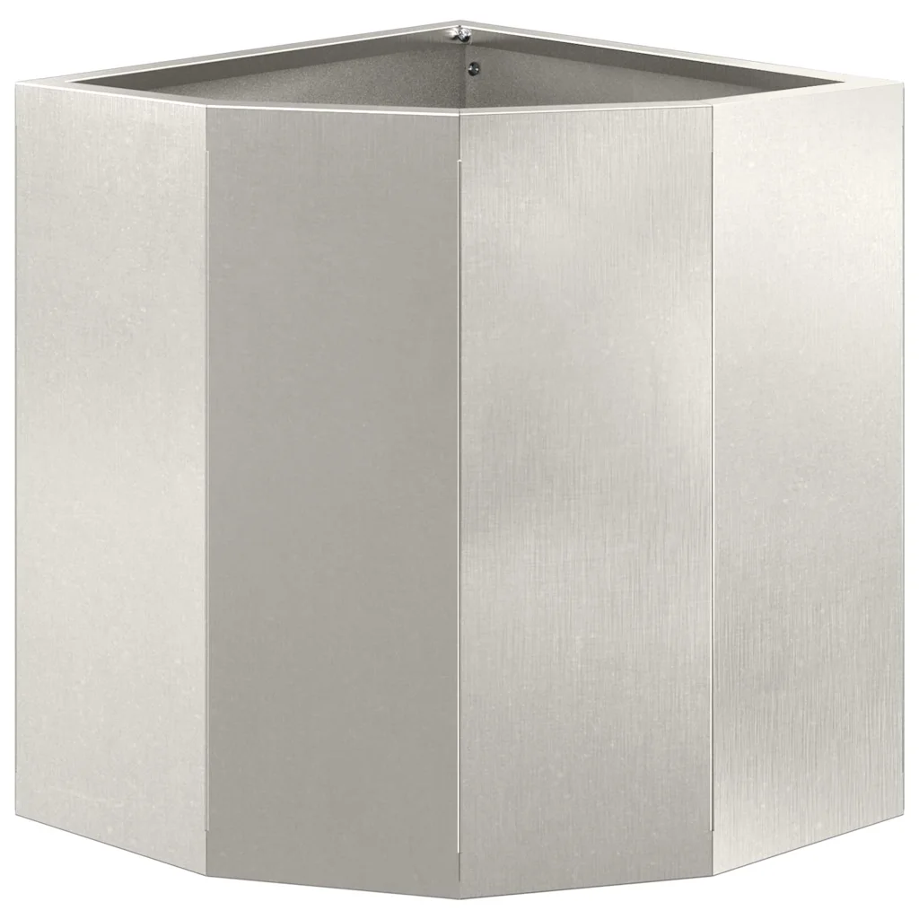- Hõbedane nurgaistutuskast roostevabast terasest mõõtudega 30 x 30 x 35 cm