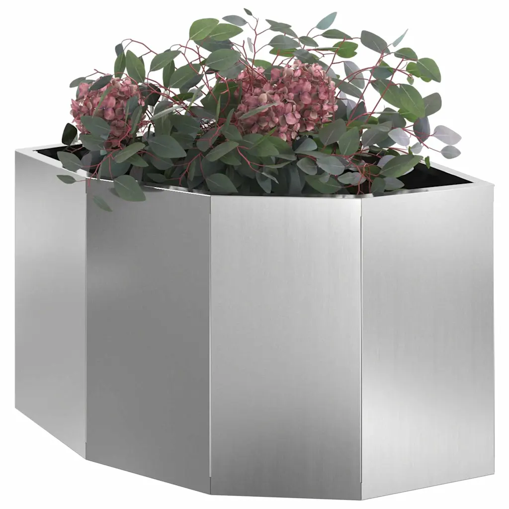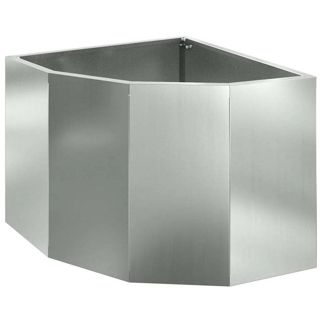 Hõbedane nurkne aiakast on praktiline lahendus väiksemate välialade sisustamiseks, võimaldades ära kasutada seni tühjaks jäänud nurgad. Tsingitud terasest konstruktsioon talub erinevaid ilmastikuolusid, pakkudes püsivat istutuskohta lilledele ja muudele taimedele. Tänu oma minimalistlikule välimusele sobitub kast erinevate väliruumi stiilidega ning lisab keskkonnale korrastatud ja modernse ilme.