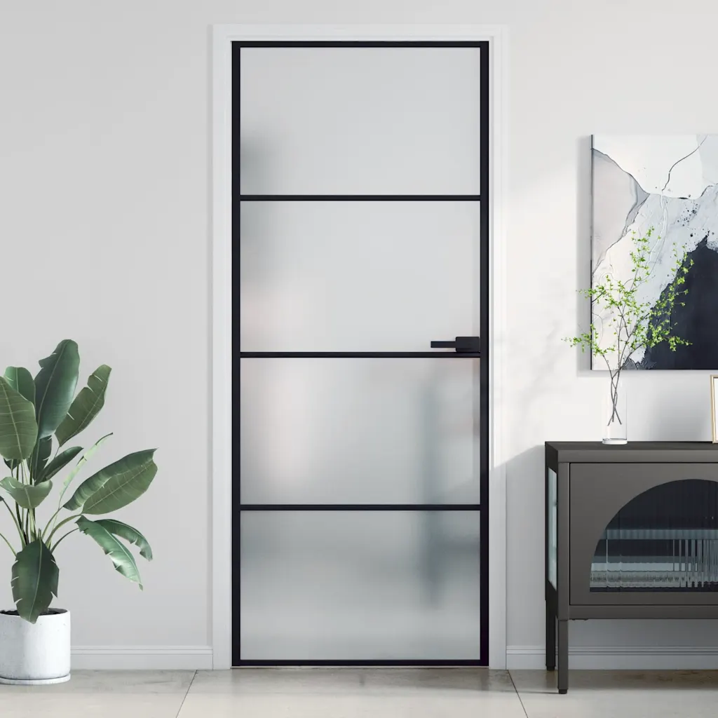 See õhuke matt must siseuks aitab luua ruumide vahele selge piiri, samas valguse liikumist liigselt piiramata. Karastatud mattklaas tagab hea privaatsuse nii kodus kui kontoris, kuid laseb loomuliku valguse läbi. Tugev alumiiniumraam muudab ukse vastupidavaks ja rõhutab modernset, sirgjoonelist sisekujundust.