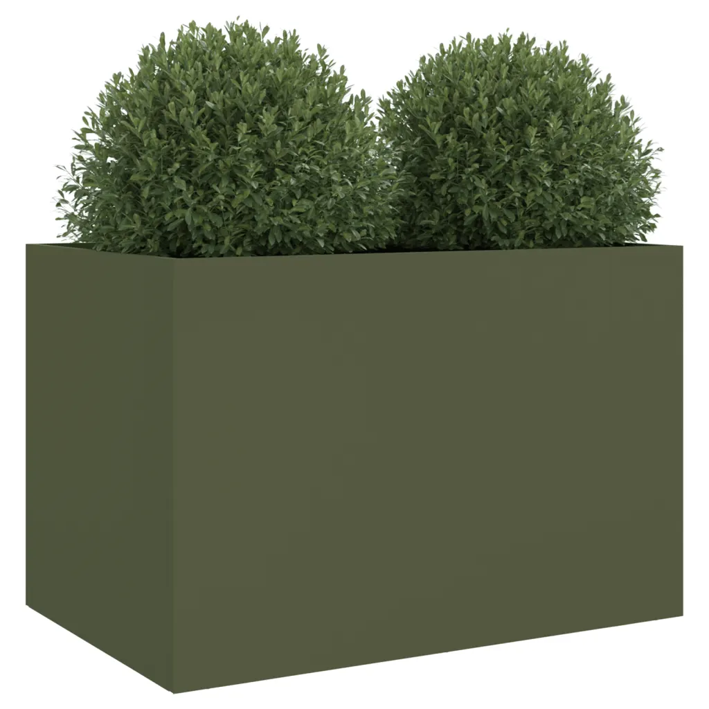 See oliiviroheline aia taimekast aitab luua korrastatud ja ühtse ilmega istutusala aias, rõdul või verandal. Külmvaltsitud terasest valmistatud kast on mõõtudega 62 x 47 x 46 cm, pakkudes piisavalt ruumi lemmiklilledele ja maitsetaimedele ning tuues väliruumi tagasihoidliku, kuid selge dekoratiivse aktsendi.