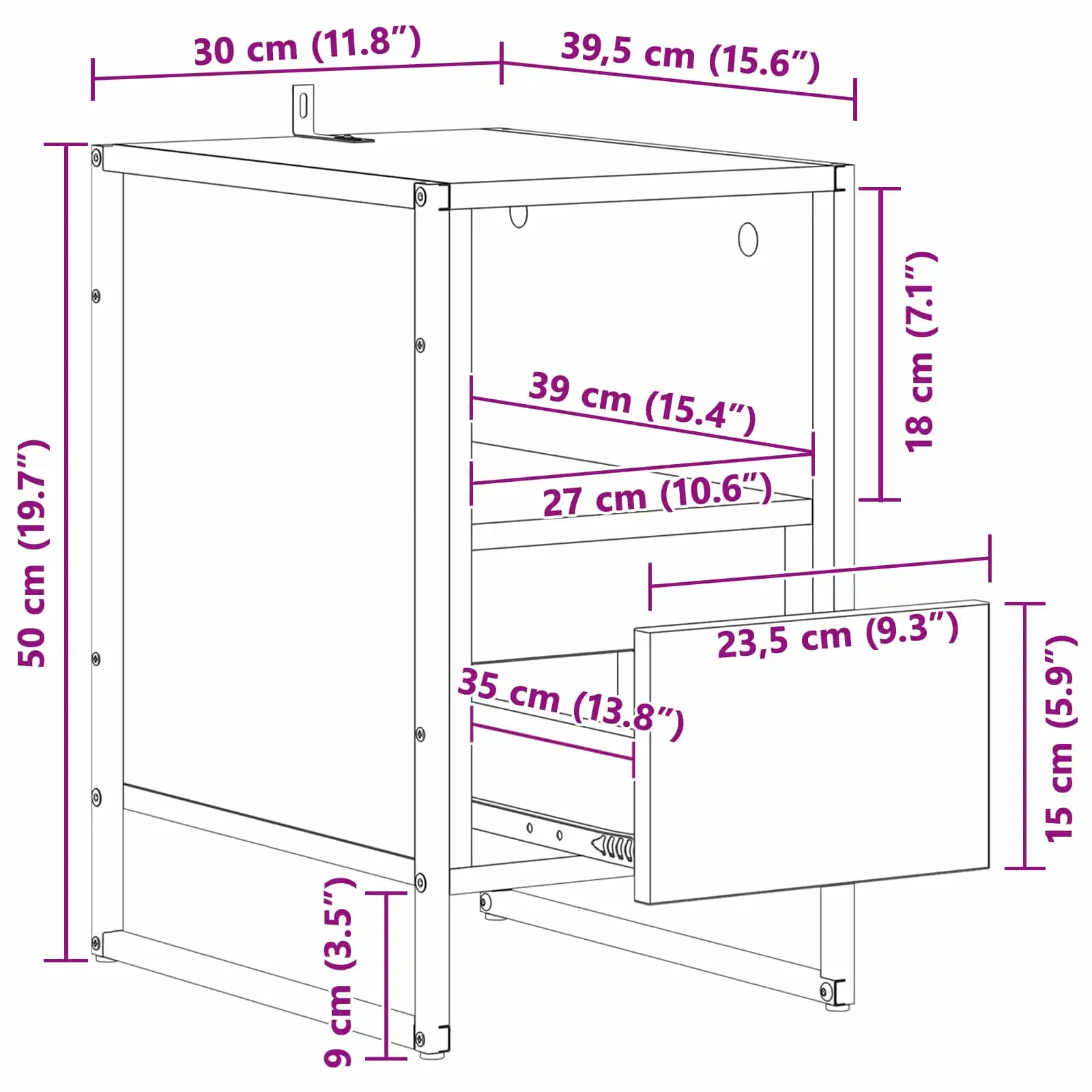 • Kompaktne mõõt 39,5 x 30 x 50 cm mahub hästi voodi kõrvale ka kitsamas toas, jättes liikumiseks piisavalt ruumi.