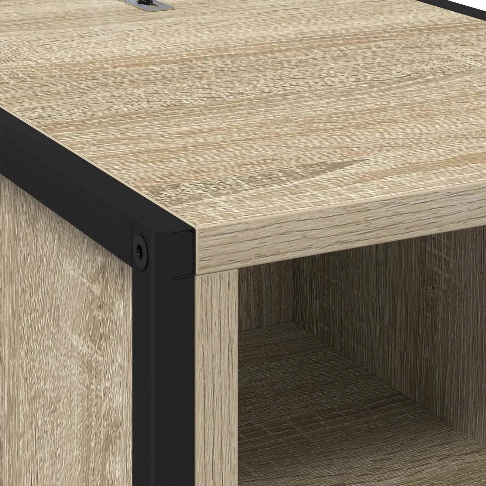 • Kaasaegne tööstuslik disain ühendab Sonoma toonis tehispuidu ja musta terasraami, mis toob magamistuppa selge ja moodsa aktsendi.