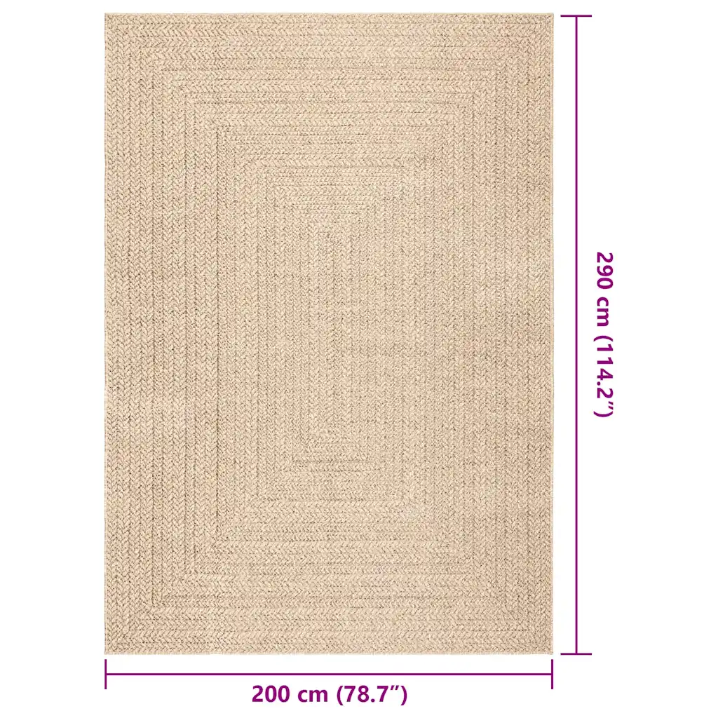 ZIZUR beež õue- ja toavaip mõõdus 200 x 290 cm loob suure ja ühtlase pinna elutuppa, söögituppa, rõdule või terrassile. Džuudiefektiga tekstuur annab loodusliku ja hubase ilme, samas kui vastupidav polüpropüleen talub hästi igapäevast kasutust nii toas kui õues.