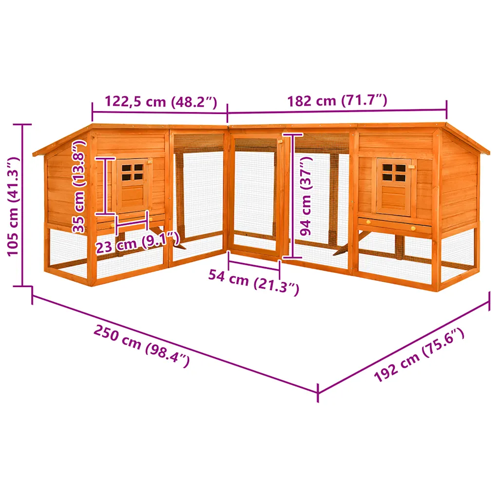 - Väga suur mõõt – kogumõõtmed 250 x 192 x 105 cm pakuvad küülikutele rohkelt liikumisruumi ja mänguvõimalusi.