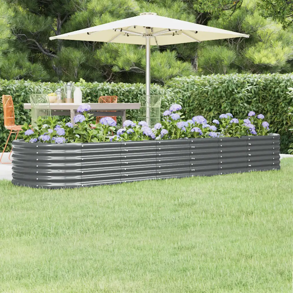 Galvaniseeritud terasest aia taimelava aitab luua korrastatud istutusala aeda, rõdule või verandale. Ovaalne ja pikk peenar mõõtudega 296 x 80 x 36 cm pakub rohkelt ruumi erinevate taimede kasvatamiseks, samas kui antratsiithall viimistlus sobitub hõlpsasti erinevate väliruumide kujundusega.