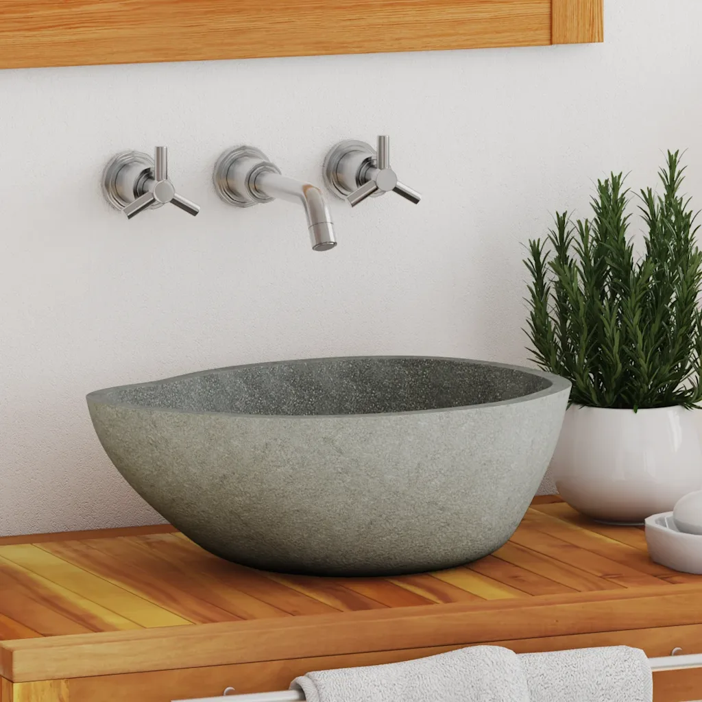 - 1 x ovaalne jõekivist valamu antratsiithallis toonis