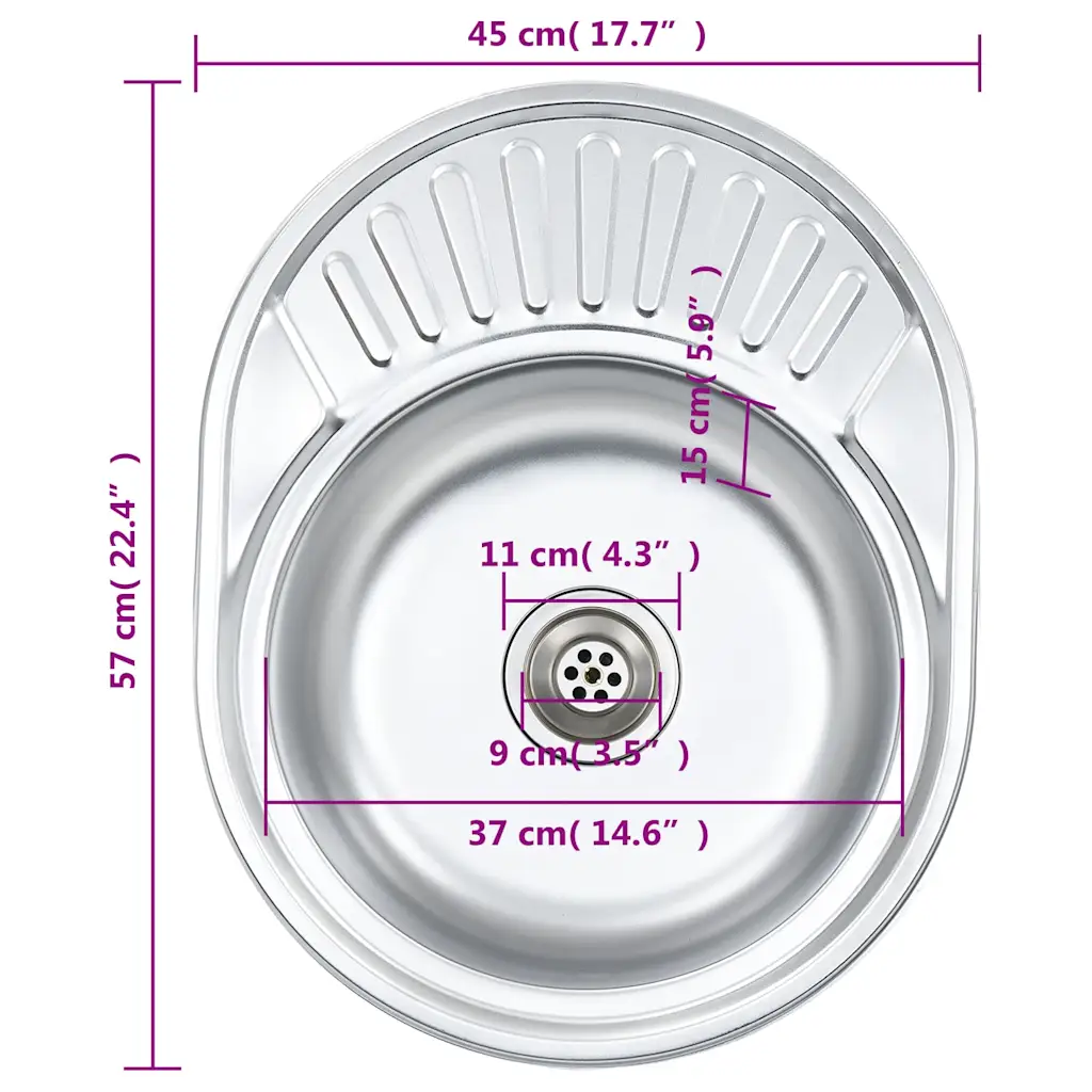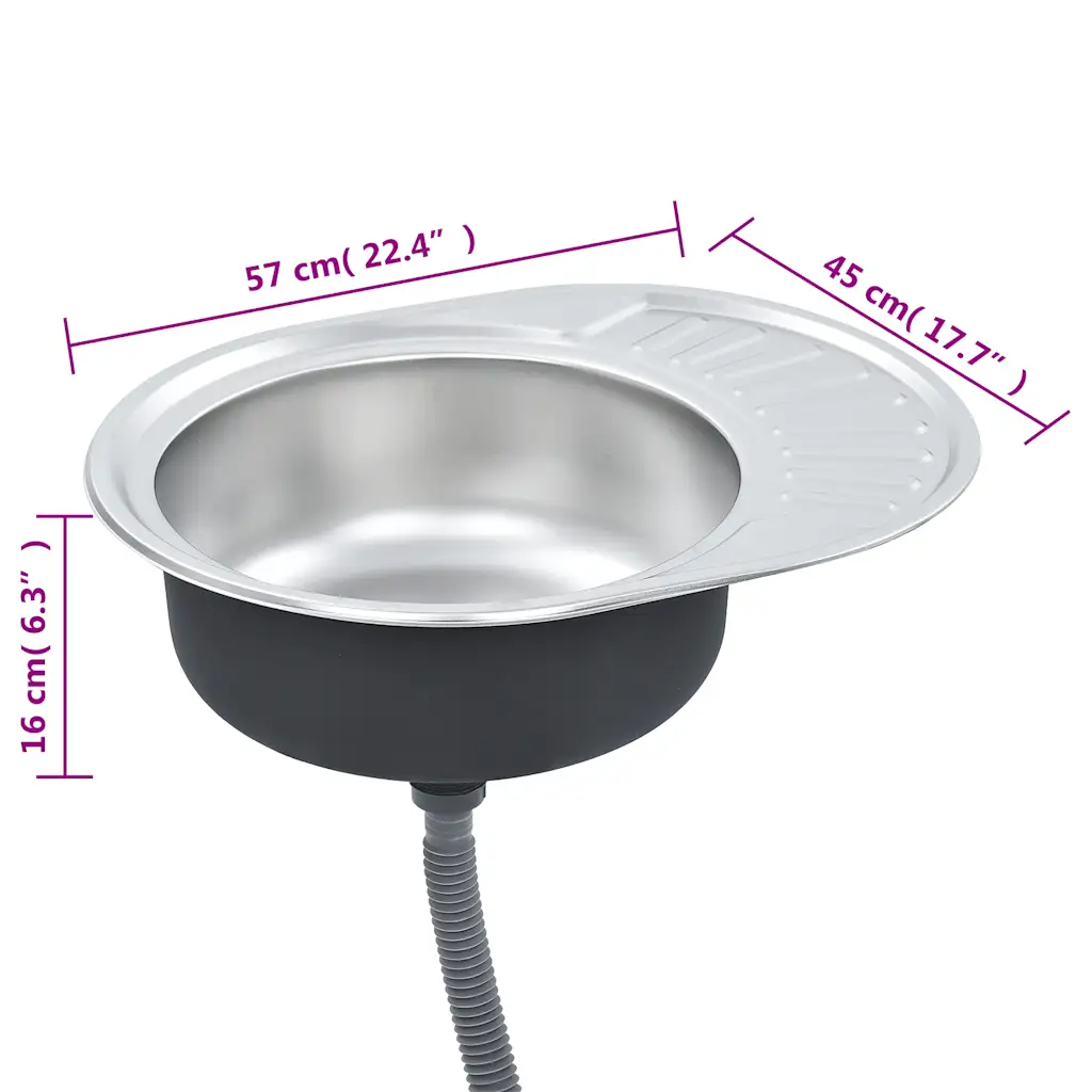 - Ovaalne roostevabast terasest köögivalamu, mõõtmetega 57 x 45 x 16 cm