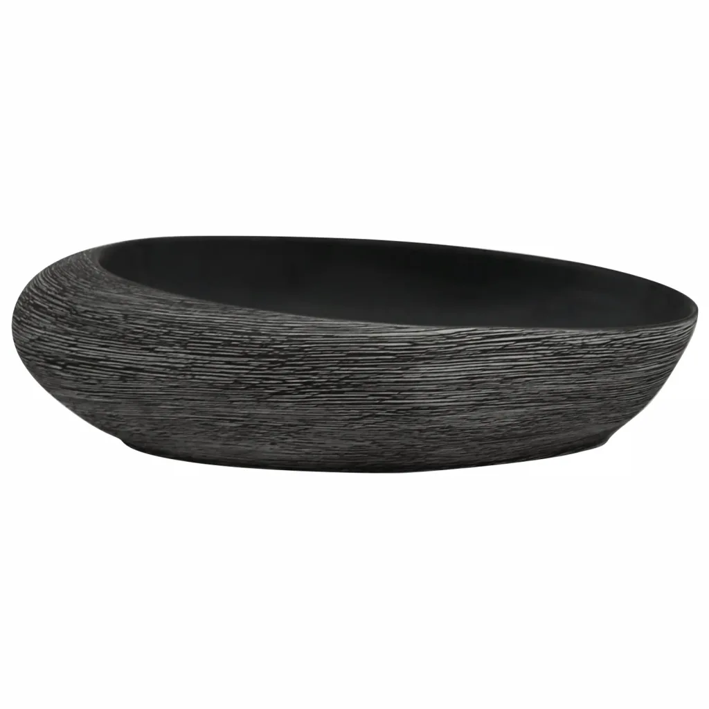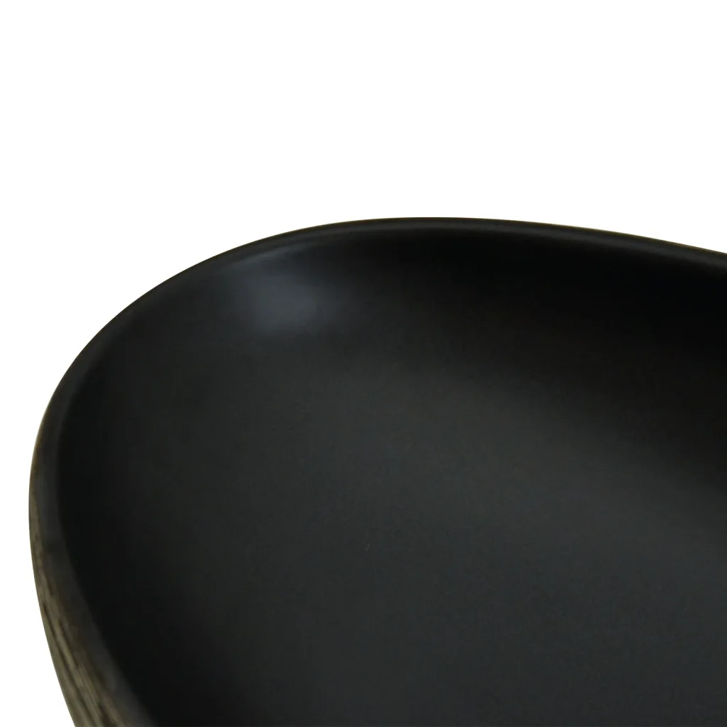 See hall-must keraamiline tööpinnale valamu sobib neile, kes otsivad vastupidavat ja lihtsasti hooldatavat lahendust, mis samal ajal tõstab vannitoa visuaalset taset. Unikaalne käsitöö, ajatu kuju ja praktilised mõõdud muudavad valiku sobivaks nii kodusesse vannituppa kui ka külaliste pesuruumi.