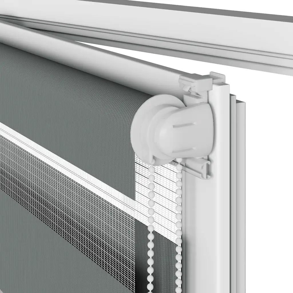 Päev-öö ruloo tumehallis toonis privaatsuse ja valguse paindlikuks reguleerimiseks